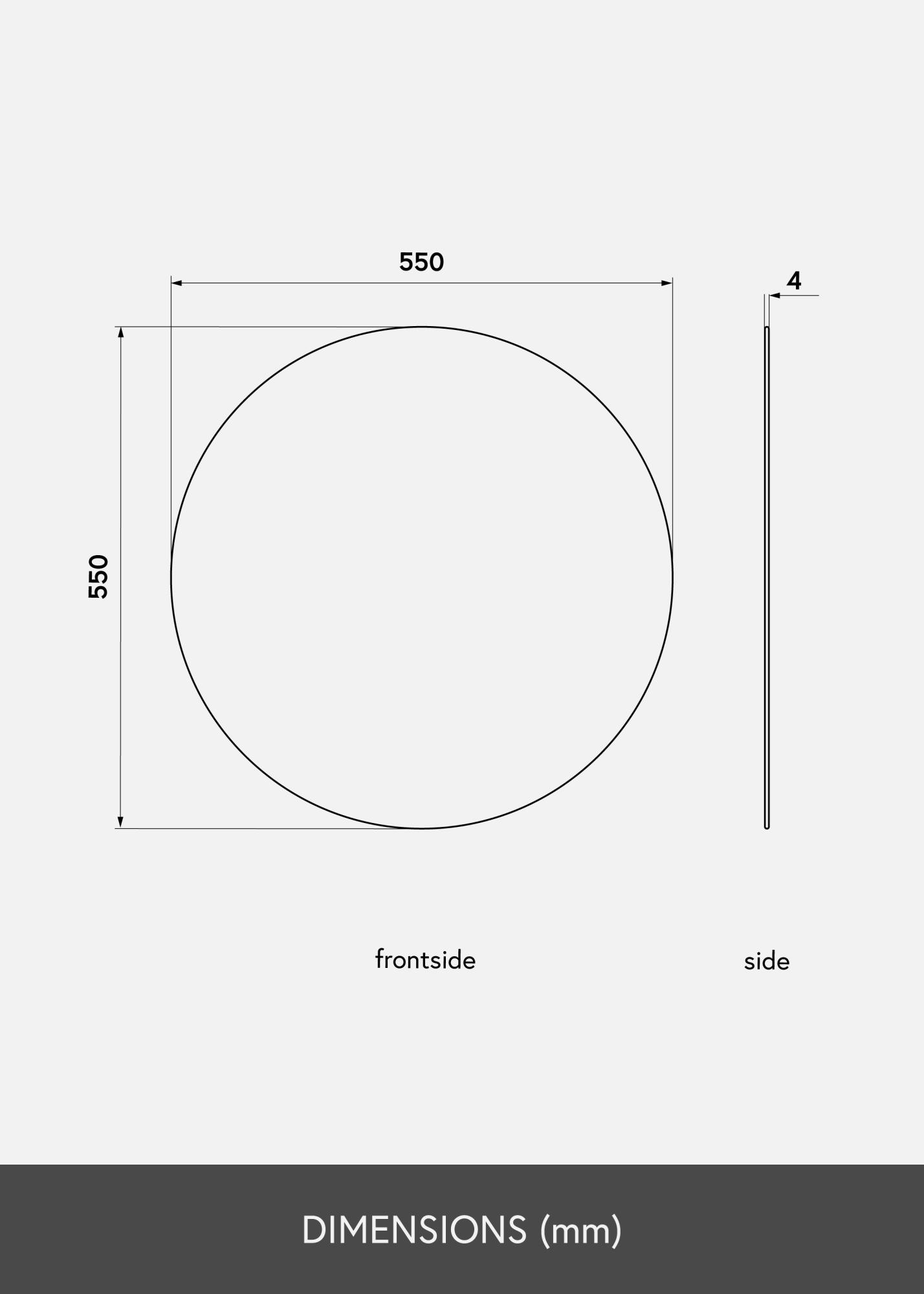 Espejo redondo de 55 cm de diámetro que forma parte de la serie de espejos redondos de KAILA. Disponible en 13 tamaños diferentes para que encuentres el tamaño perfecto para tu habitación. El espejo es extremadamente fino y elegante, y se adapta a todo tipo de habitaciones y estilos de decoración.
