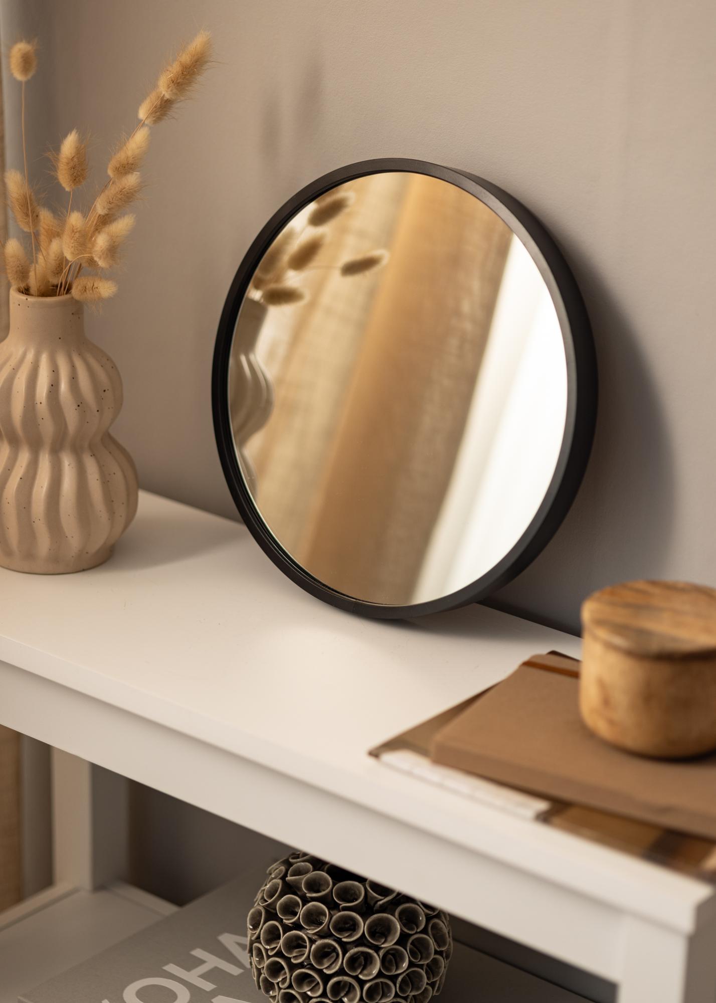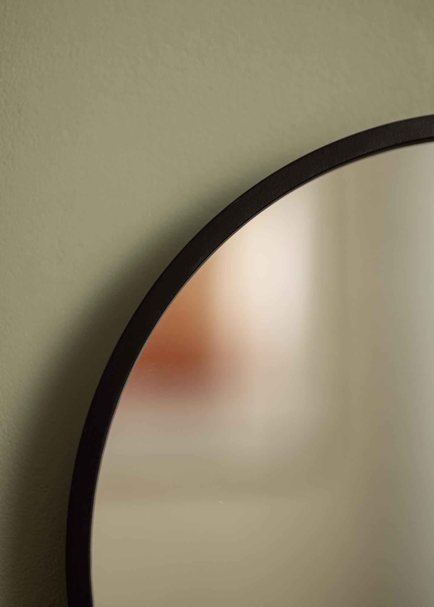 KAILA Round Mirror Edge Black es un espejo redondo con un elegante marco metálico fino de color negro mate, lo que le da un aspecto industrial y moderno. El marco tiene - dependiendo del tamaño - una profundidad de entre 30-40 mm, lo que hace que el vidrio del espejo sobresalga un poco de la pared y cree un efecto tridimensional fascinante. La profundidad del marco también hace que el espejo se sienta sólido al mismo tiempo que mantiene su aspecto minimalista. ¡Un espejo redondo perfecto para colocar en cualquier habitación donde desees aportar función y diseño minimalista sueco elegante!