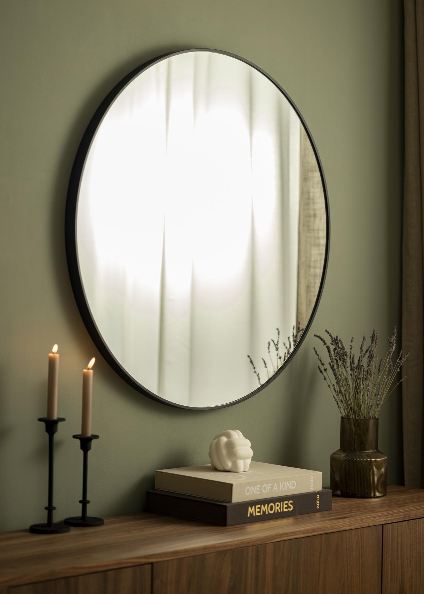 KAILA Round Mirror Edge Black es un espejo redondo con un elegante marco metálico fino de color negro mate, lo que le da un aspecto industrial y moderno. El marco tiene - dependiendo del tamaño - una profundidad de entre 30-40 mm, lo que hace que el vidrio del espejo sobresalga un poco de la pared y cree un efecto tridimensional fascinante. La profundidad del marco también hace que el espejo se sienta sólido al mismo tiempo que mantiene su aspecto minimalista. ¡Un espejo redondo perfecto para colocar en cualquier habitación donde desees aportar función y diseño minimalista sueco elegante!
