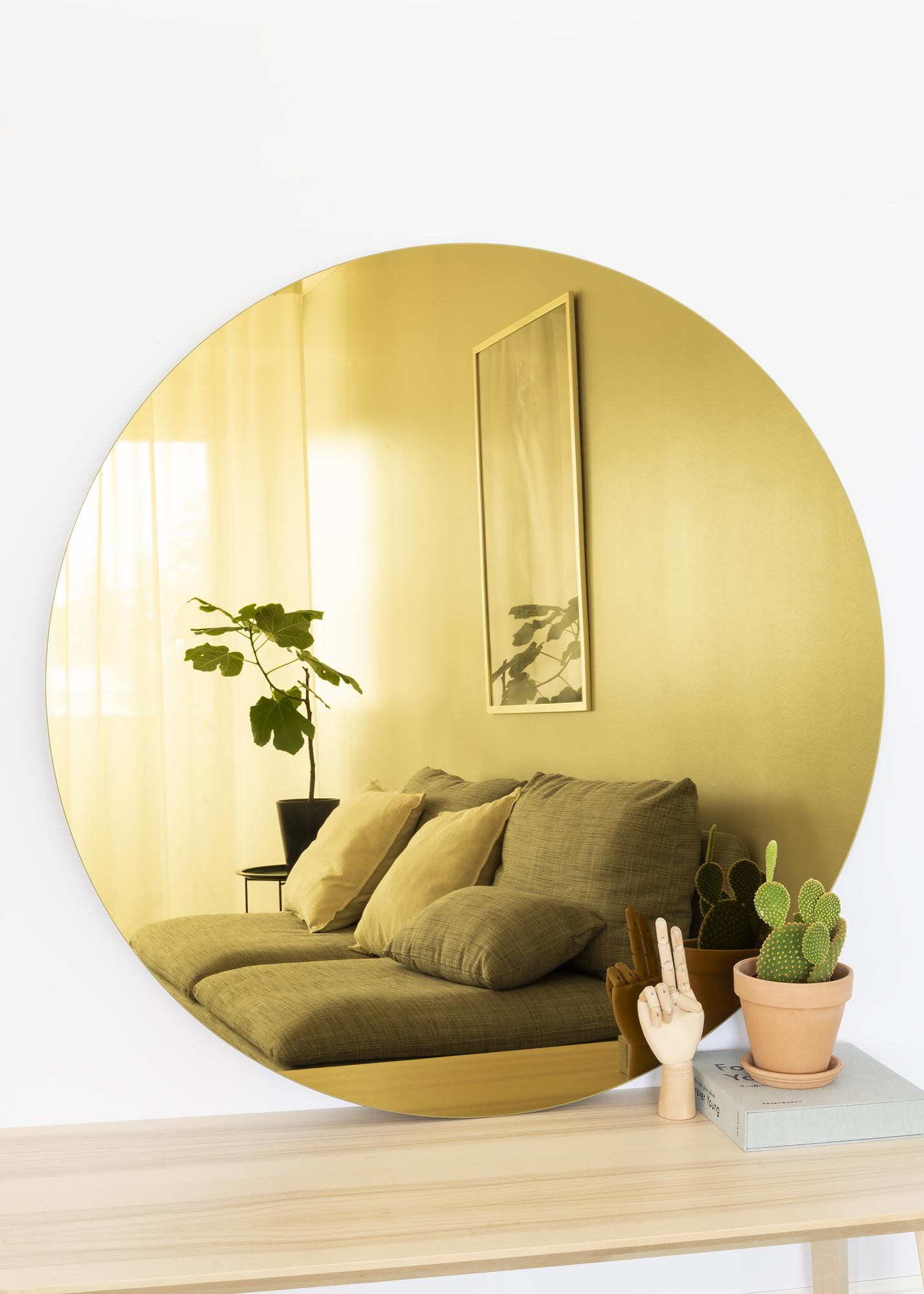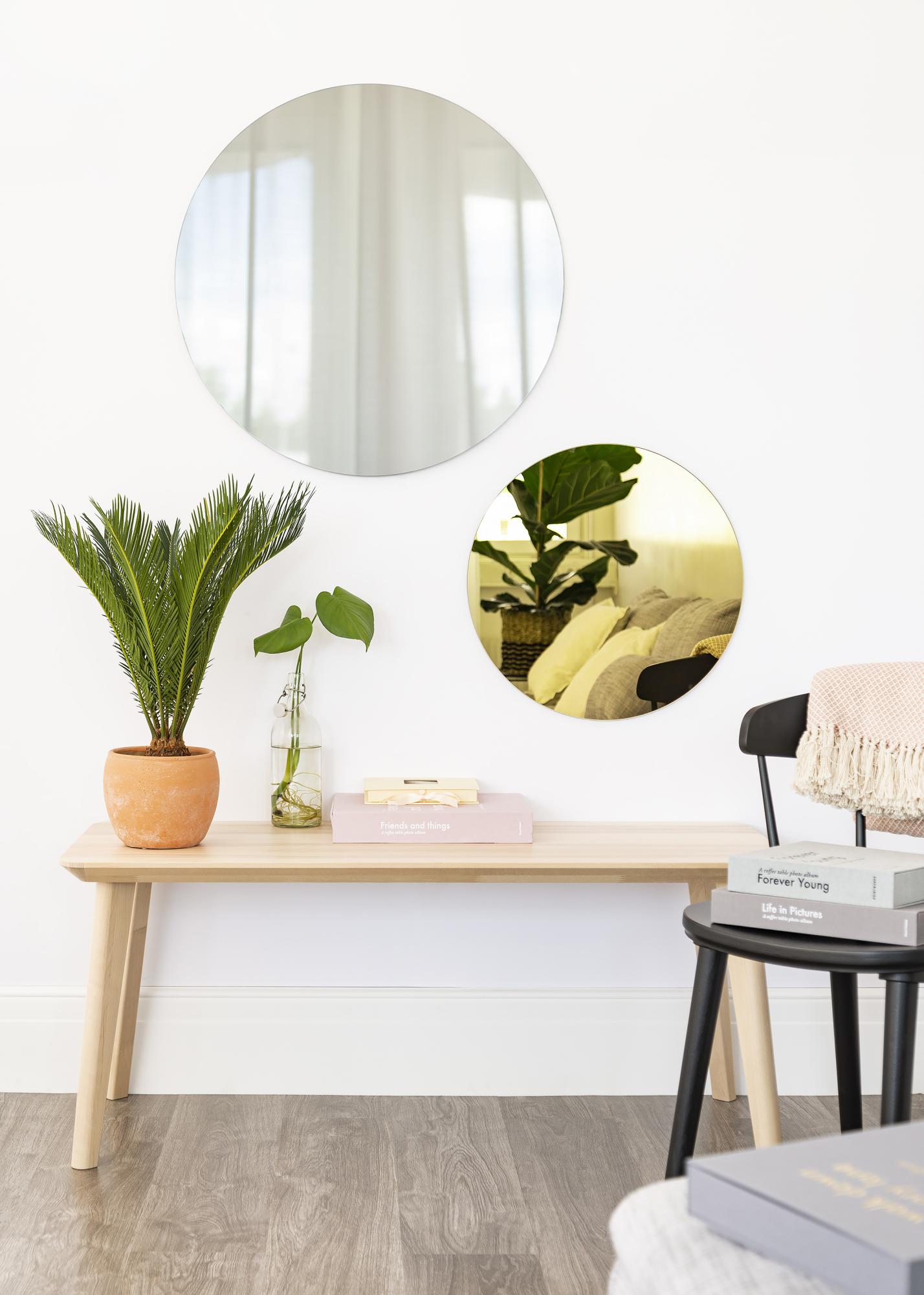 KAILA Espejo Redondo Dorado es un diseño elegante en su máxima expresión. El espejo redondo es fino y no tiene marco, y esta forma elegante en combinación con el vidrio del espejo tono dorado le da a este espejo un aspecto exclusivo. Un espejo redondo como este crea una sensación suave y acogedora en tu hogar, al mismo tiempo que el toque moderno con el vidrio tono dorado demuestra un sentido de estilo y detalles.