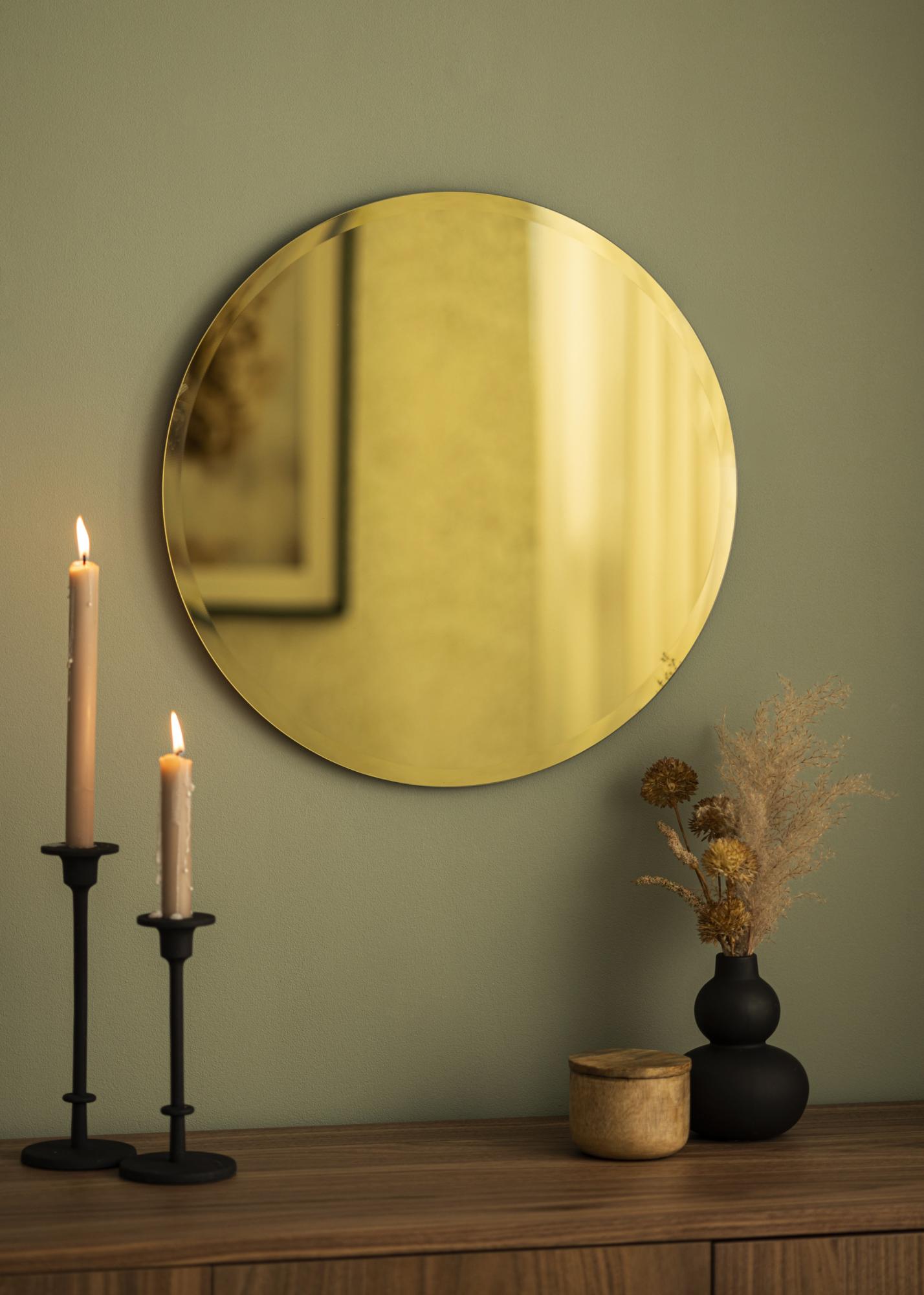 Aporta un toque lujo a tu hogar con Dorado Deluxe! Este espejo de pared tiene una forma redonda suave y un exclusivo vidrio de espejo coloreado en dorado. Para realzar aún más la sensación de lujo, el espejo tiene un elegante borde facetado pulido.