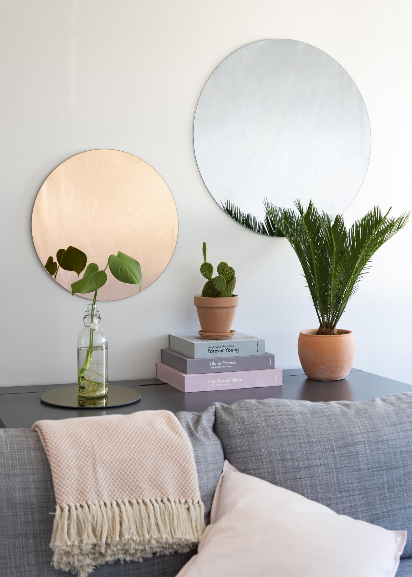 El espejo redondo KAILA Rose Dorado está disponible en varios tamaños. este modelo tiene un generoso tamaño de 110 cm Ø.