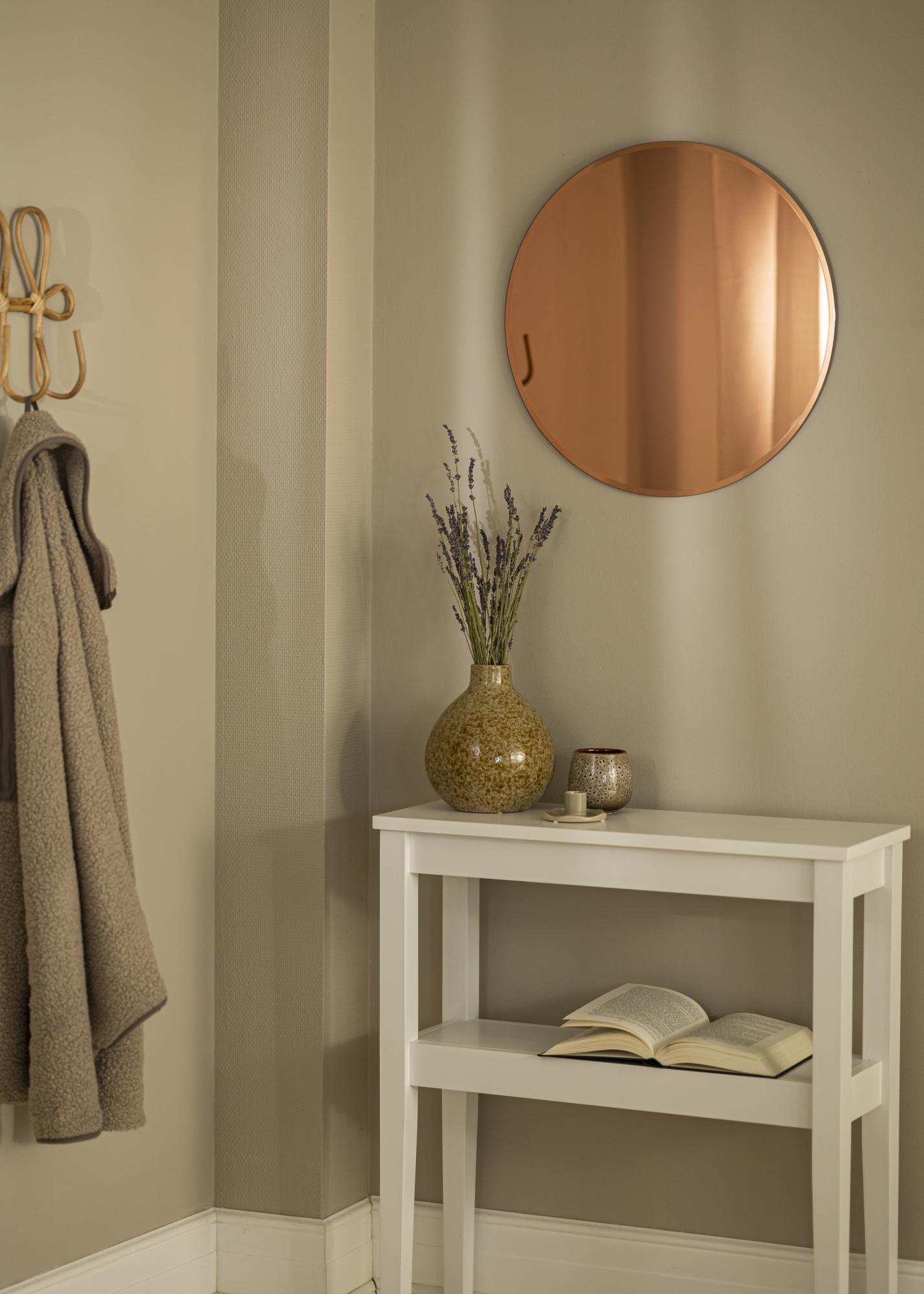 Rose Dorado Deluxe es un espejo de pared con un diseño atemporal, con un toque moderno en forma de un vidrio de espejo coloreado. El cálido tono dorado rosa del vidrio del espejo brinda una expresión exclusiva y única, que combina perfectamente con la elegante forma redonda. Para mayor elegancia, este espejo también está equipado con un borde facetado.