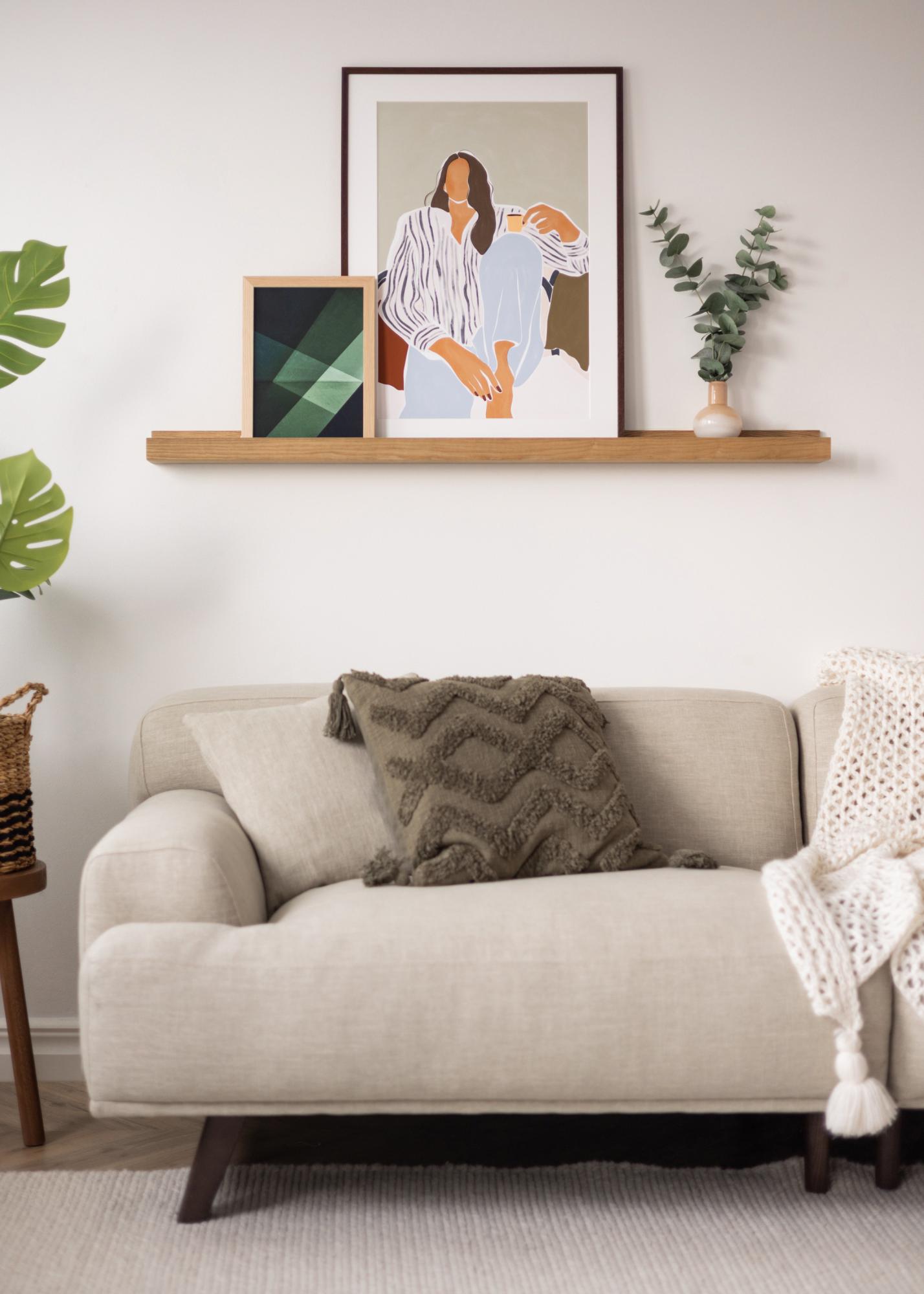Con un práctico estante para cuadros, exhibes tus cuadros de manera elegante y además obtienes excelentes oportunidades para variar tu arte de pared. Este estante para cuadros está fabricado en roble macizo y tiene un diseño elegante con líneas simples y rectas. El propio estante tiene una ranura fresada que brinda soporte a tus cuadros y hace que tengan un ángulo atractivo al inclinarse contra la pared. La repisa para cuadros está disponible en varias longitudes, de las cuales esta variante tiene una longitud de 130 cm. El estante para cuadros también tiene agujeros pretaladrados, y para hacer todo aún más fácil, también se incluyen los tornillos y tacos adecuados.