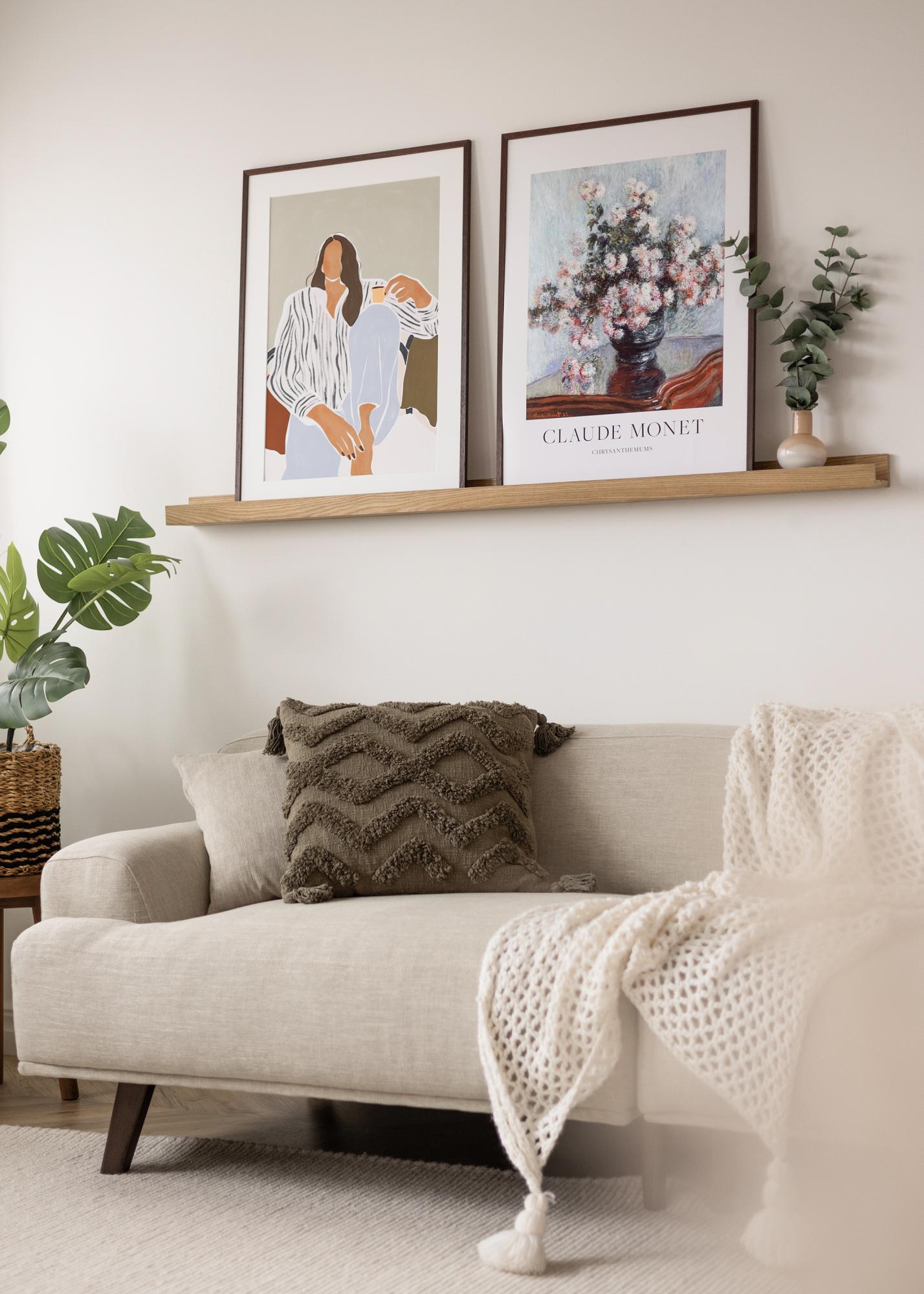 Con un práctico estante para cuadros, exhibes tus cuadros de manera elegante y además obtienes excelentes oportunidades para variar tu arte en la pared. Este estante para cuadros está fabricado en roble macizo y tiene un diseño elegante con líneas simples y rectas. La repisa tiene una ranura fresada que brinda soporte a tus cuadros y hace que tengan un bonito ángulo al apoyarse contra la pared. La repisa para cuadros está disponible en varias longitudes, de las cuales esta variante tiene una longitud de 150 cm. El estante para cuadros también tiene agujeros perforados previamente, y para facilitar aún más el montaje se incluyen tornillos y tacos adecuados.