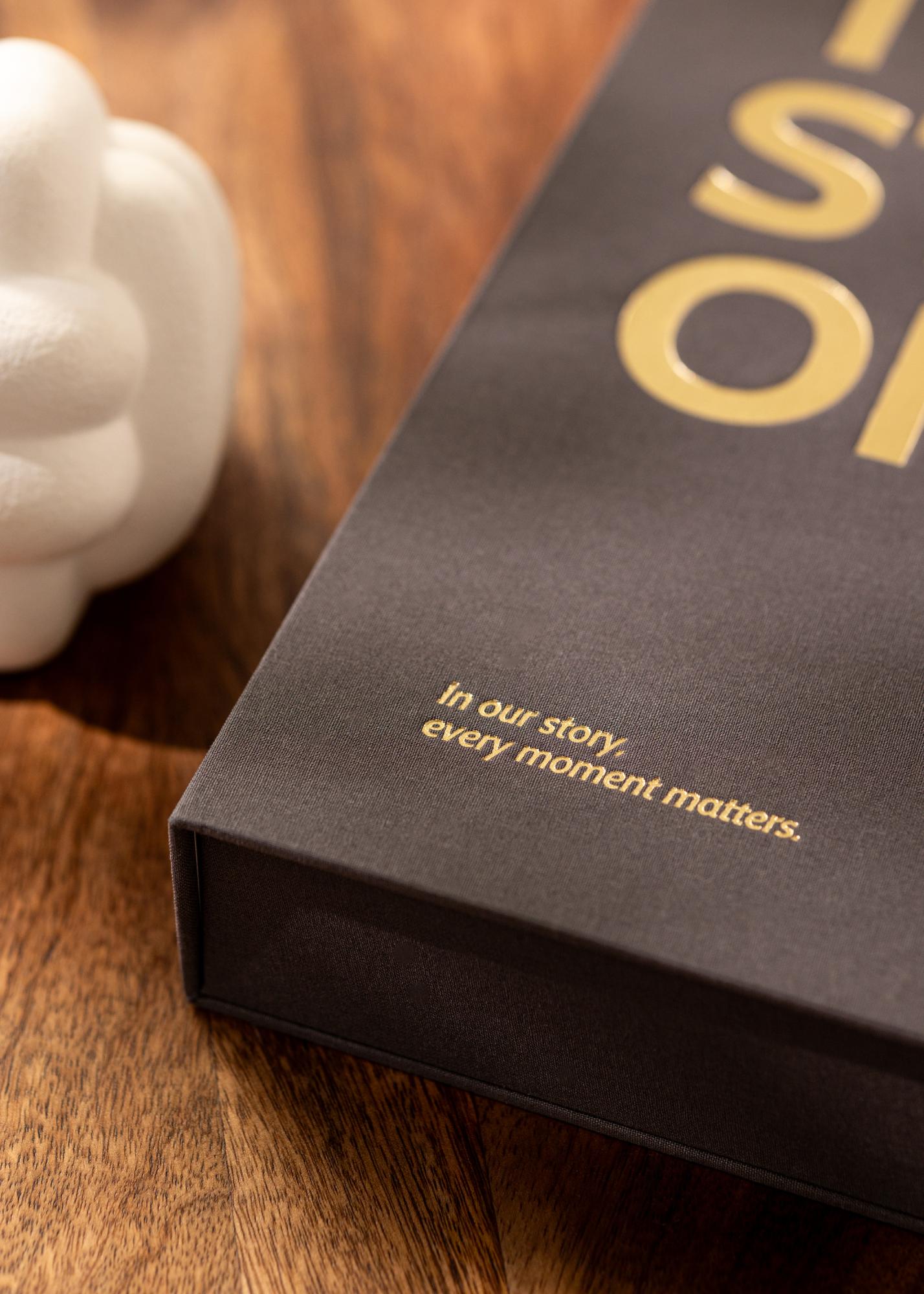 The Story of Us es el álbum de fotos perfecto para reunir recuerdos de su boda e historia de amor. Con su diseño elegante color crema y formato de mesa de café, se convierte en una hermosa parte de la decoración al mismo tiempo que preserva sus momentos más significativos. El álbum tiene 60 páginas negras, sin ácido, donde pueden fijar sus fotos y crear una historia eterna de su amor.