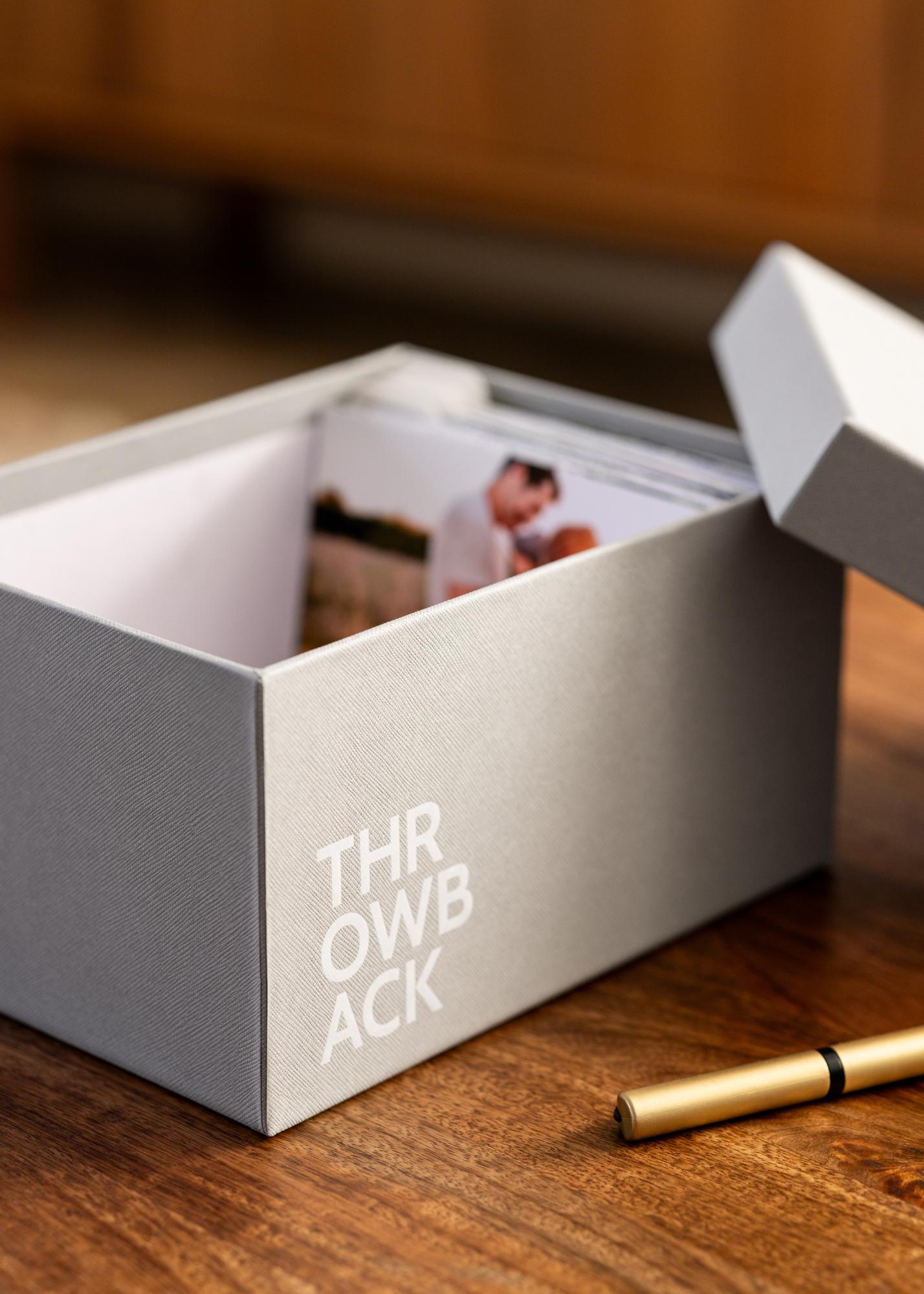 KAILA Throwback Photo Box es una caja de fotos estilizada y práctica en un elegante tono gris. Tiene capacidad para hasta 700 fotos de tamaño 10x15 cm y es perfecta para organizar y preservar tus recuerdos favoritos. Una solución decorativa y funcional para aquellos que desean tener sus fotos recopiladas de una manera atractiva.