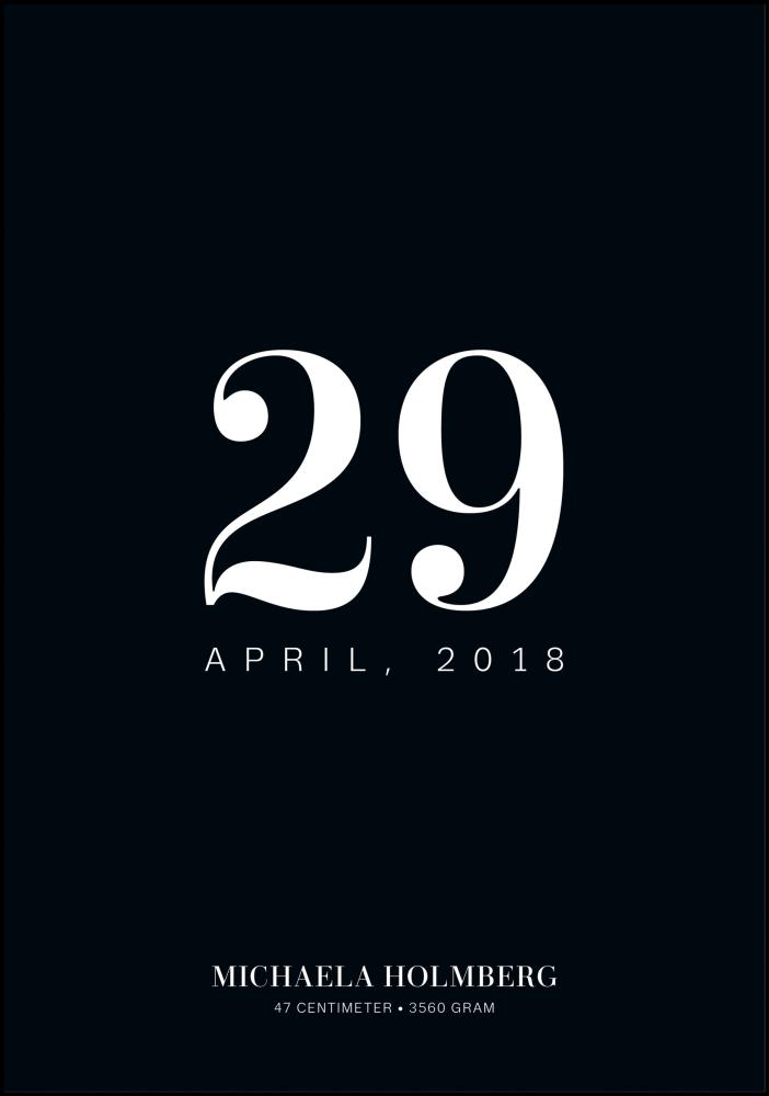 Lámina de nacimiento Fecha - Negro (21x29,7 cm (A4))