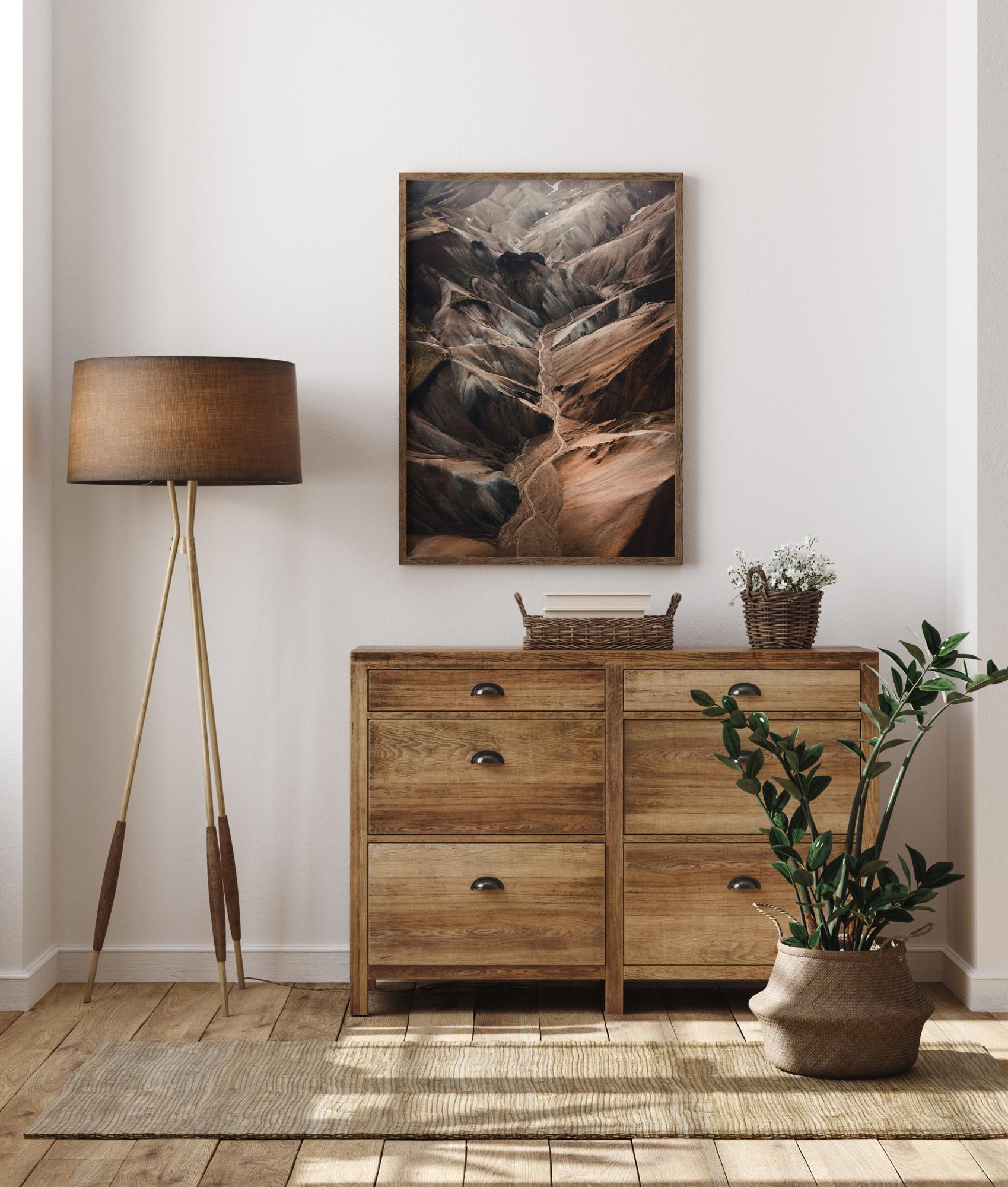 Una fascinante imagen aérea de las coloridas montañas de Ryholite. Los tonos suavemente otoñales y marrones crean una sensación de calidez y hacen de este un póster inspirador para colgar en tu hogar. Sigue el solitario sendero y ve a dónde te lleva en este hermoso sendero natural.