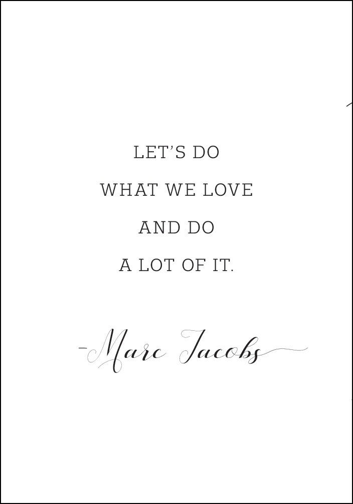 Este póster motivador refabrica la famosa frase de Marc Jacobs en inglés: "Hagamos lo que amamos hacer y hagámoslo mucho" - "Låt oss göra det vi älskar att göra och göra mycket av det". La letra negra sobre un fondo blanco transmite un mensaje instantáneo. Perfecto para una pared blanca en el dormitorio.