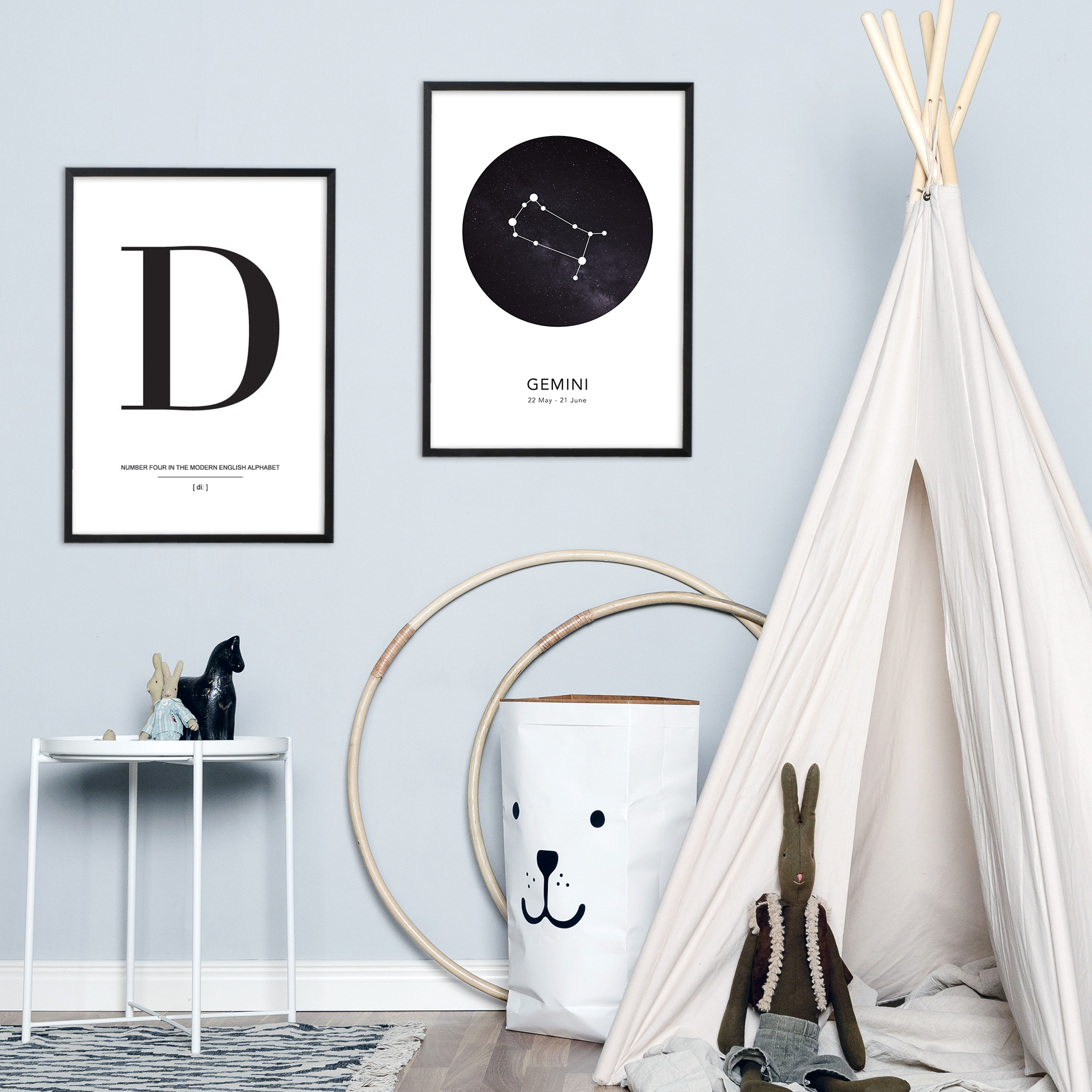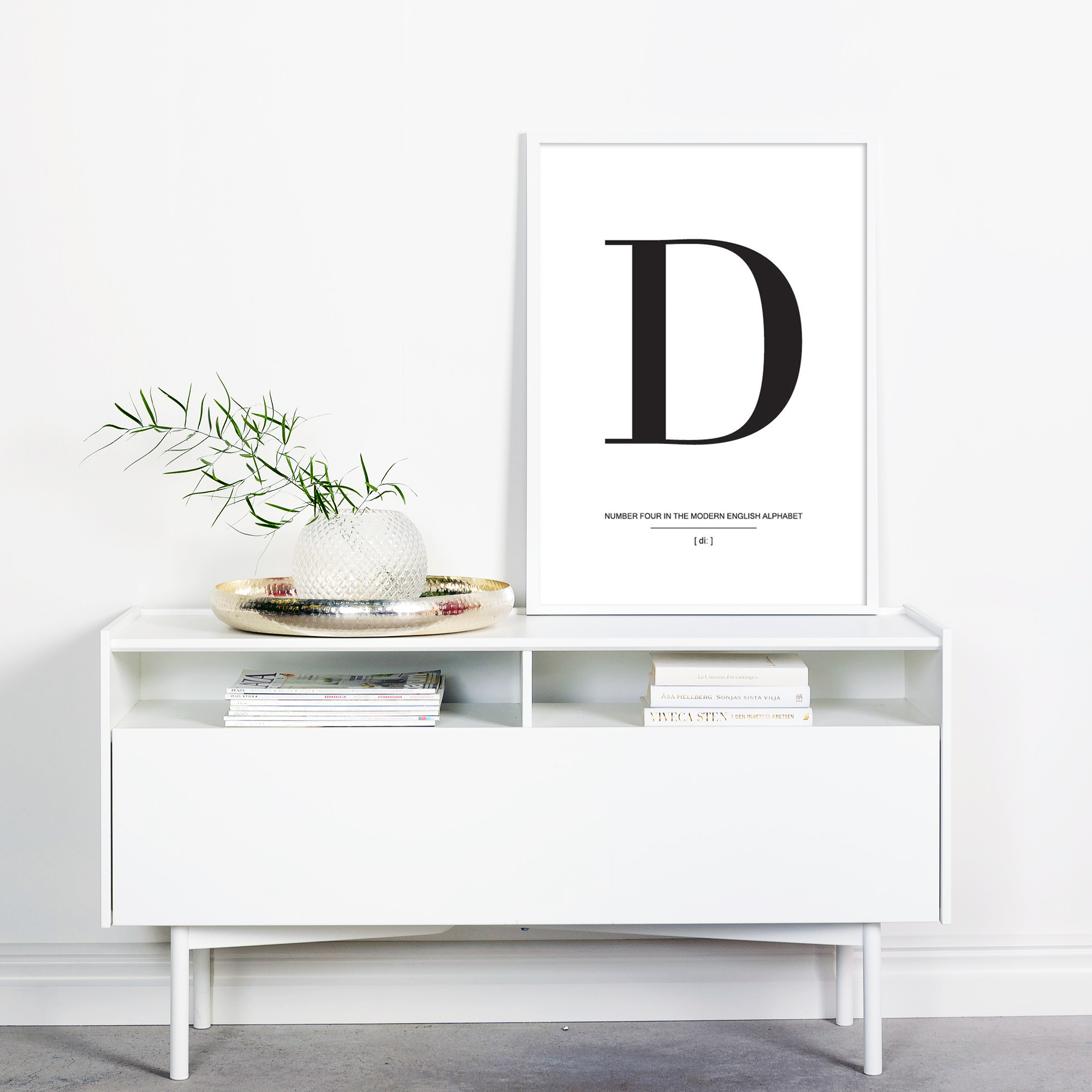 En la simplicidad reside la belleza, y esto lo demuestra verdaderamente este elegante póster con la letra D en negro sobre un fondo blanco. El cartel tiene una tipografía elegante y debería complementarse con otras láminas de letras de la misma serie para crear una pared de cuadros moderna y hermosa. Elige tus pósters favoritos con letras y selecciona entre nuestra amplia gama de marcos de calidad, luego solo deja que la imaginación fluya en las paredes de tu hogar.