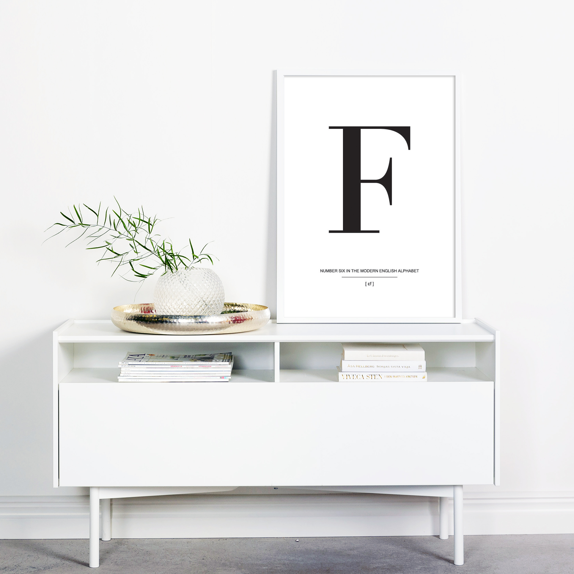 En la simplicidad reside la belleza, y esto lo demuestra verdaderamente este elegante póster con la letra F en negro sobre un fondo blanco. El cartel tiene una tipografía atractiva y debería complementarse con otras láminas de letras de la misma serie para crear una pared de cuadros moderna y hermosa. Elige tus pósters favoritos con letras y selecciona entre nuestra amplia gama de marcos de calidad, luego solo deja que la imaginación fluya en las paredes de tu hogar.