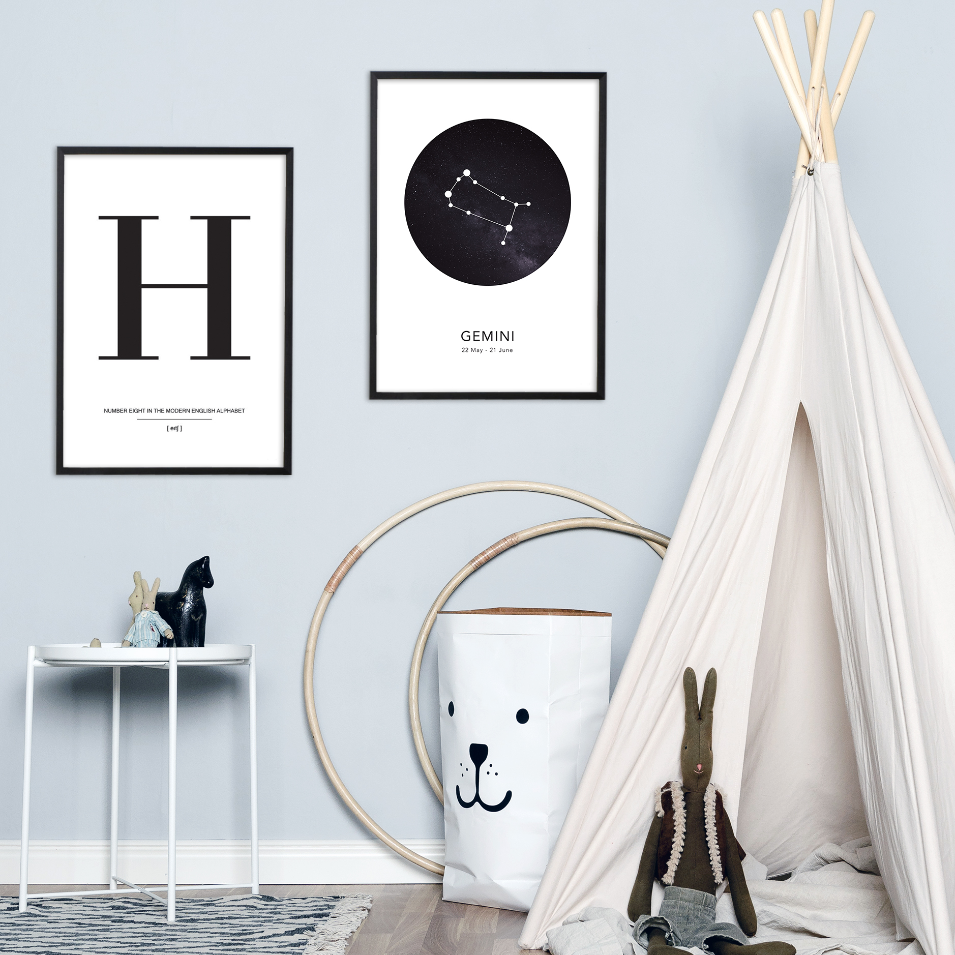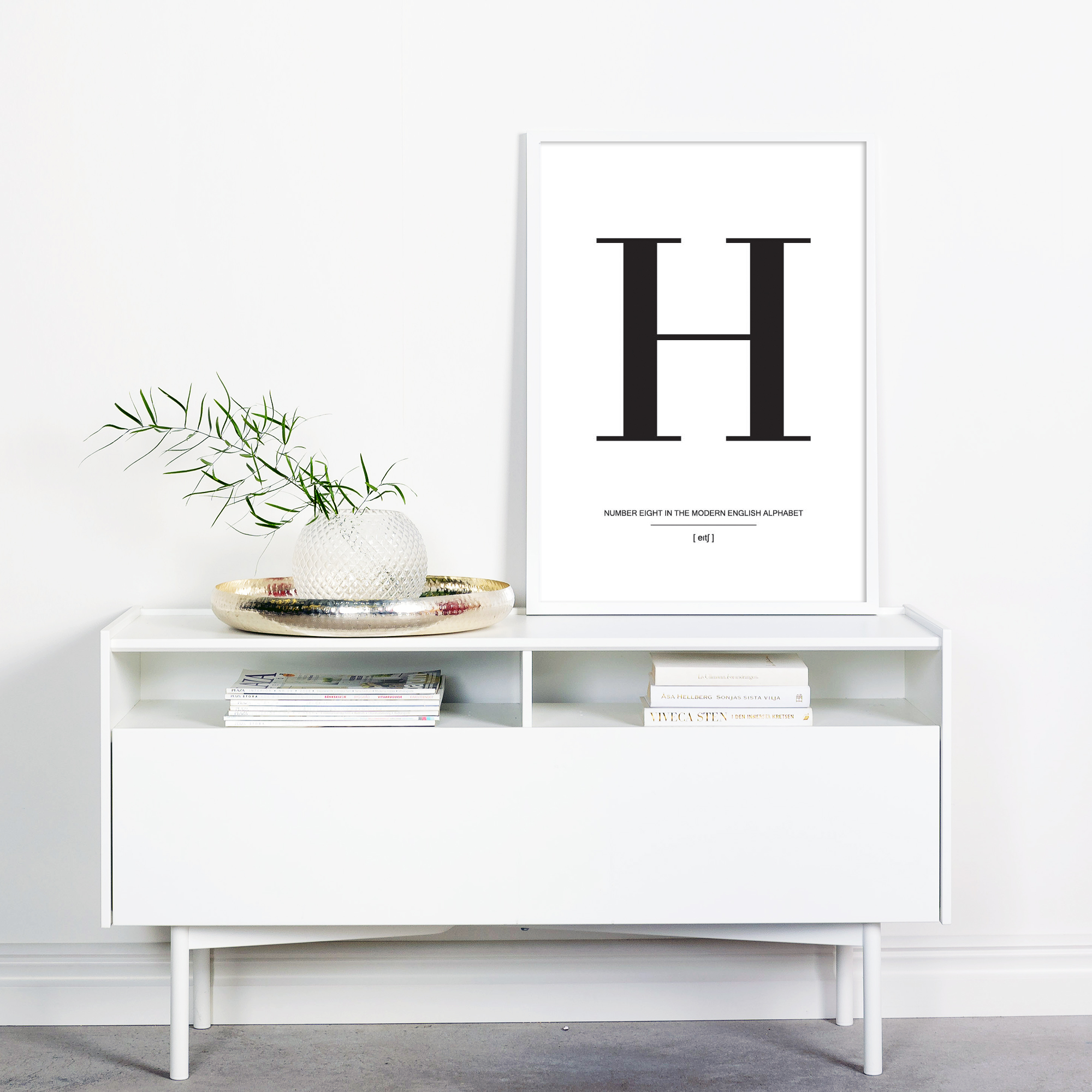 En la simplicidad reside la belleza, y esto lo demuestra verdaderamente este elegante póster con la letra H en negro sobre un fondo blanco. El cartel tiene una tipografía elegante y debería complementarse con otros carteles de letras de la misma serie para crear una pared de cuadros moderna y hermosa. Elige tus pósters favoritos con letras y selecciona entre nuestra amplia gama de marcos de calidad, luego solo deja que la imaginación fluya en las paredes de tu hogar.