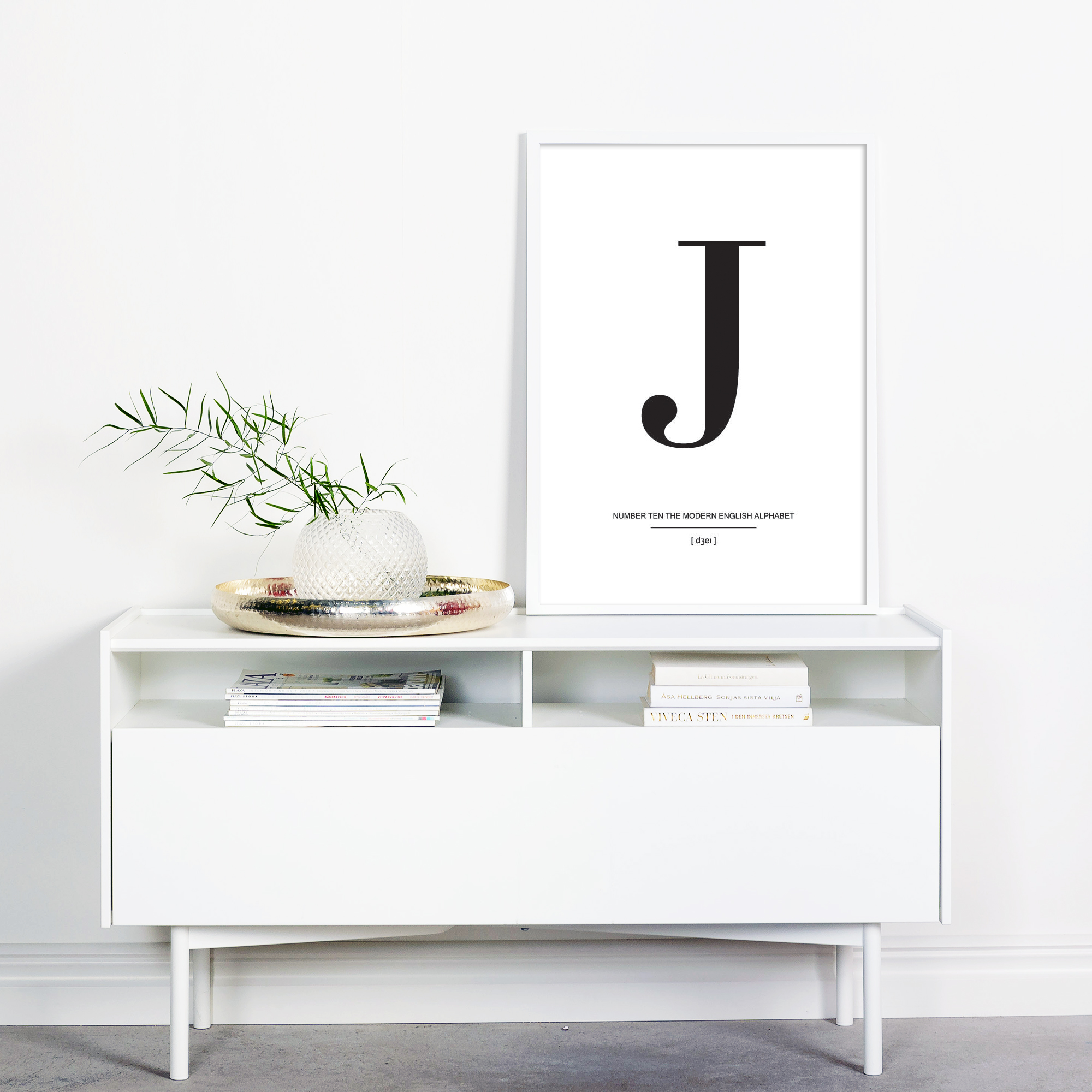 En la simplicidad reside la belleza, y esto lo demuestra verdaderamente este elegante póster con la letra J en negro sobre un fondo blanco. El cartel tiene una tipografía elegante y debería complementarse con otros carteles de letras de la misma serie para crear una pared de cuadros moderna y hermosa. Elige tus pósters favoritos con letras y selecciona entre nuestra amplia gama de marcos de calidad, luego solo deja que la imaginación fluya en las paredes de tu hogar.