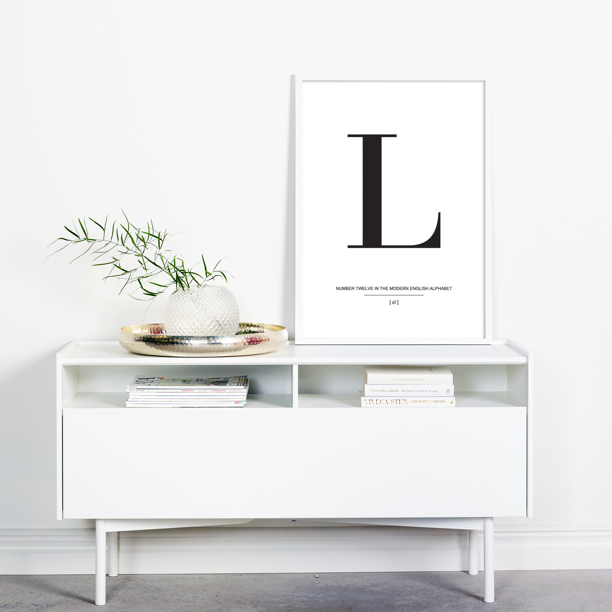 En la simplicidad reside la belleza, y esto lo demuestra verdaderamente este elegante póster con la letra L en negro sobre un fondo blanco. El cartel tiene una tipografía elegante y debería complementarse con otras láminas de letras de la misma serie para crear una pared de cuadros moderna y hermosa. Elige tus pósters de letras favoritos y selecciona entre nuestra amplia gama de marcos de calidad, luego solo deja que la imaginación fluya en las paredes de tu hogar.
