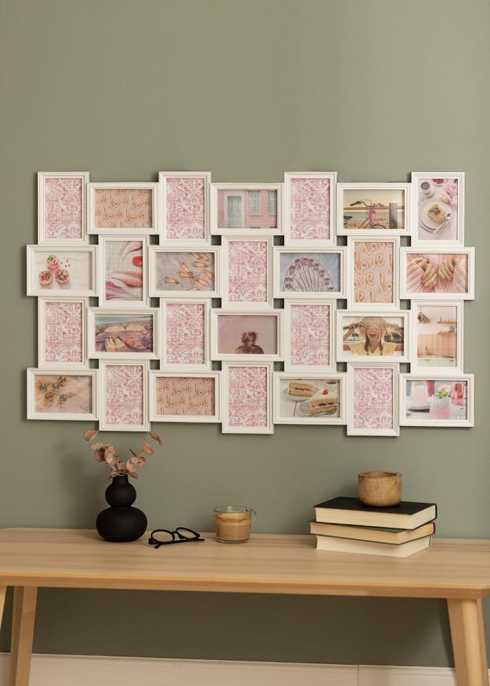 ¿Tienes muchas fotos de amigos y familiares que quieres exhibir en tu pared en casa? ¡Entonces este marco collage, con espacio para 28 fotos de 10x15 cm, es para ti! El marco tiene un diseño elegante con un tono blanco que combina con fotos de todos los colores. Para montar tus fotos en el marco, gira los clips de metal que mantienen la parte trasera en su lugar, suelta la placa trasera y coloca tus fotos. El marco tiene una sola gran parte trasera para que puedas montar todas las fotos al mismo tiempo.