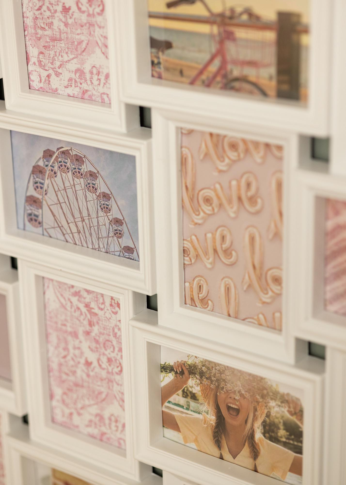 Este marco collage está equipado con vidrio acrílico cristalino, que además es irrompible y ligero. Un marco collage con vidrio acrílico es una buena opción cuando quieres colgar fotografías en la habitación de los niños.
