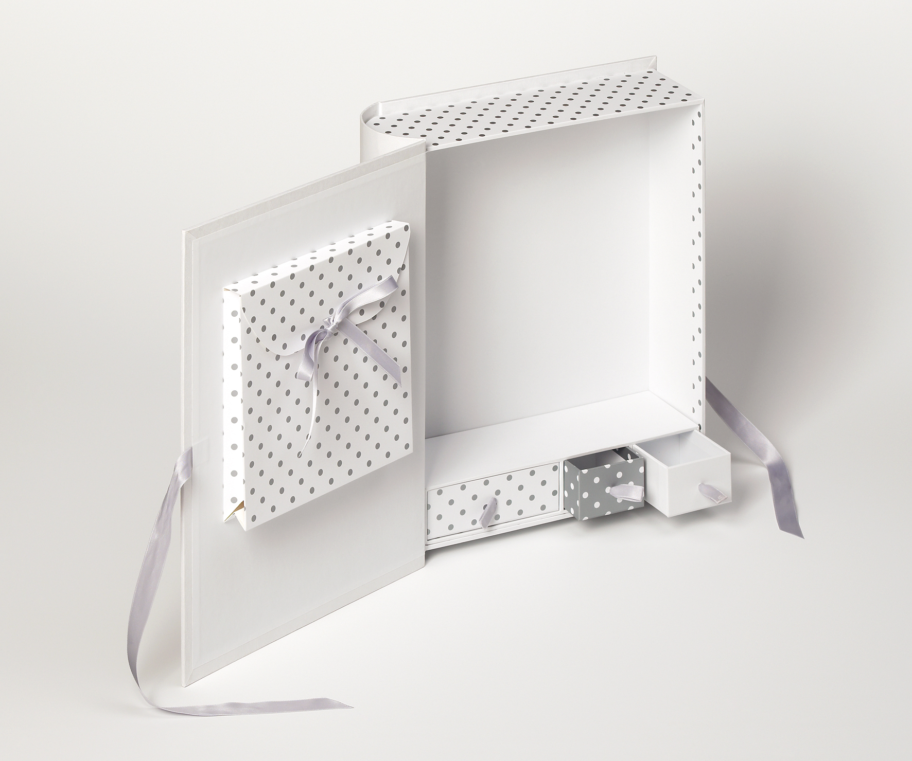 Caja organizadora ideal para fotos y pequeños objetos. En la caja hay 3 cajitas más pequeñas que son perfectas, por ejemplo, para el primer diente. También hay una bolsa de almacenamiento que puedes cerrar. En la parte delantera de la caja puedes poner tu propia foto para darle tu toque personal.