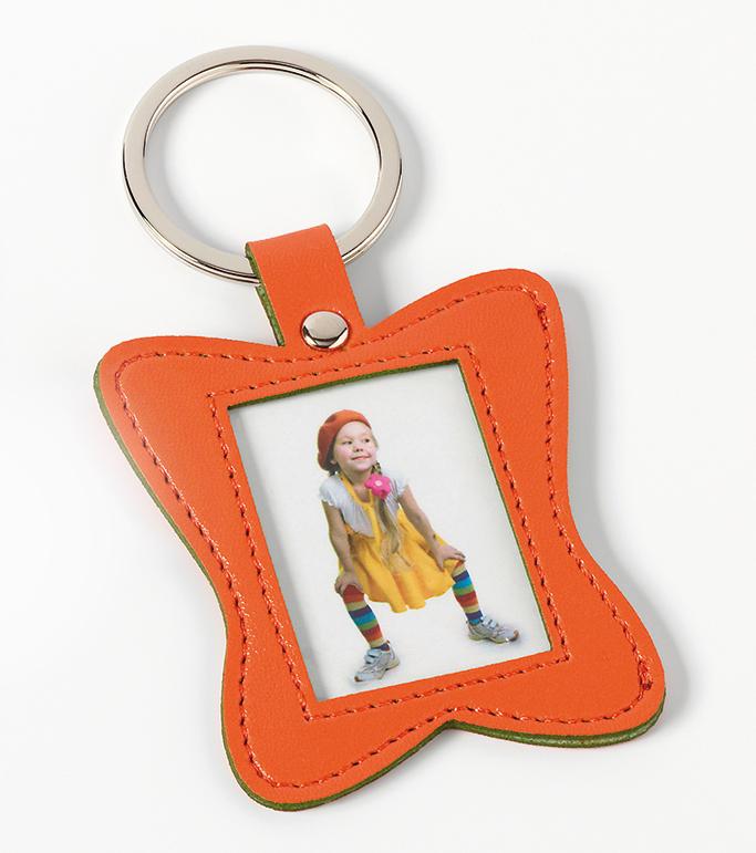 Llavero bonito de la clásica marca Walther en cuero sintético de color naranja con espacio para una foto de 4x4,5 cm. Con este llavero, siempre tendrás tu foto favorita cerca.