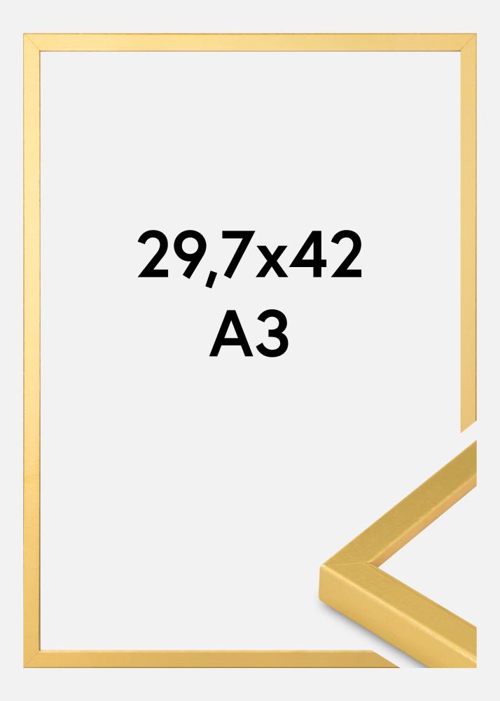 Este marco de fotos es una combinación perfecta de elegancia y modernidad, lo que lo convierte en una excelente opción para resaltar tus motivos favoritos. Con un tamaño de 29,7x42 cm (A3), es perfecto para exhibir imágenes o obras de arte más grandes. La superficie de color dorado tiene un brillo sutil y un acabado ligeramente texturizado que proporciona una expresión exclusiva y sofisticada.