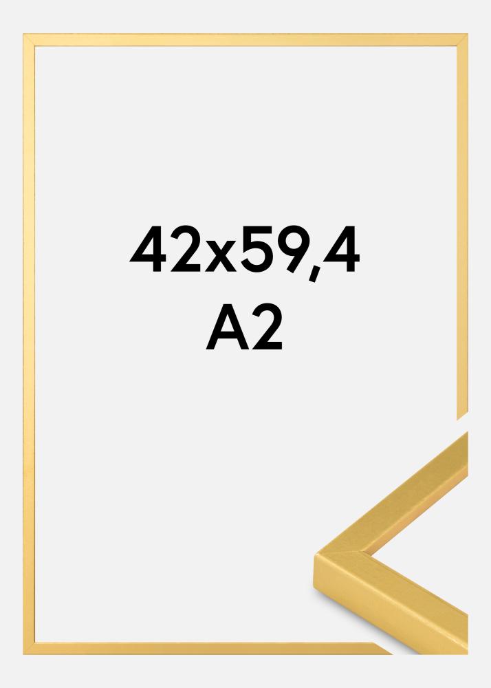 Para aquellos que buscan un marco de fotos con un toque de lujo y elegancia, este marco color dorado es una excelente elección. Con su tamaño de 42x59,4 cm, se adapta perfectamente a motivos A2, lo que lo hace ideal para resaltar tus imágenes o obras de arte favoritas. La superficie dorada tiene un brillo sutil y un acabado ligeramente texturizado que ofrece una expresión exclusiva y sofisticada.