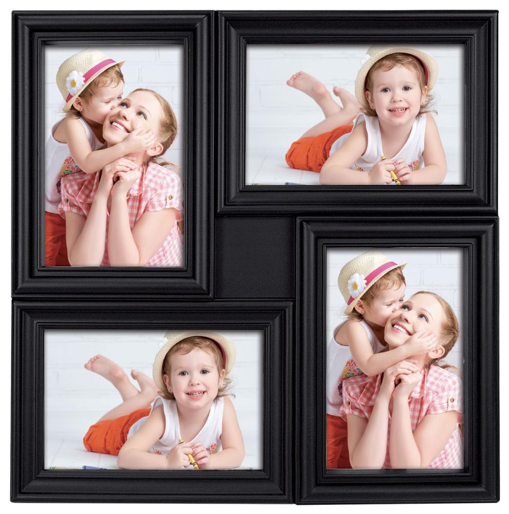 ¡Reúne tus momentos favoritos en un solo lugar fácilmente enmarcándolos en un marco collage! Este marco collage tiene espacio para 4 fotos en tamaño 10x15 cm, 2 en formato vertical y 2 en formato horizontal. El marco collage tiene un elegante tono negro y está hecho de material compuesto. Incluye soporte para colgar en la pared. Las dimensiones exteriores del marco son de 33x33 cm y su forma cuadrada le da un aspecto elegante, convirtiéndolo en un cuadro decorativo para tu hogar.