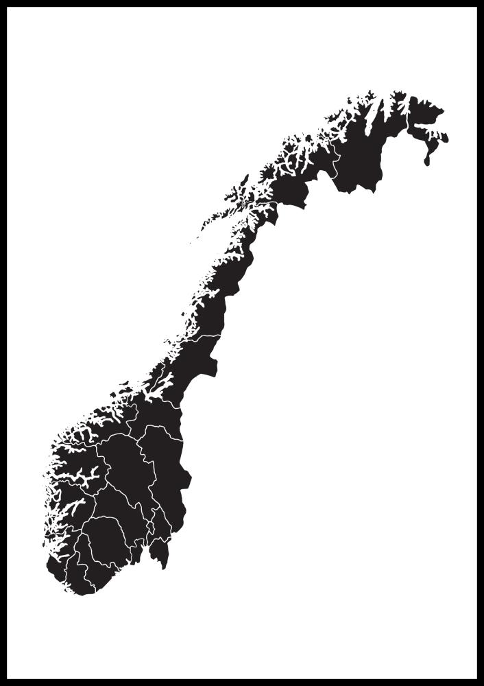 Mapa - Norge - Negro Póster (21x29.7 cm (A4))