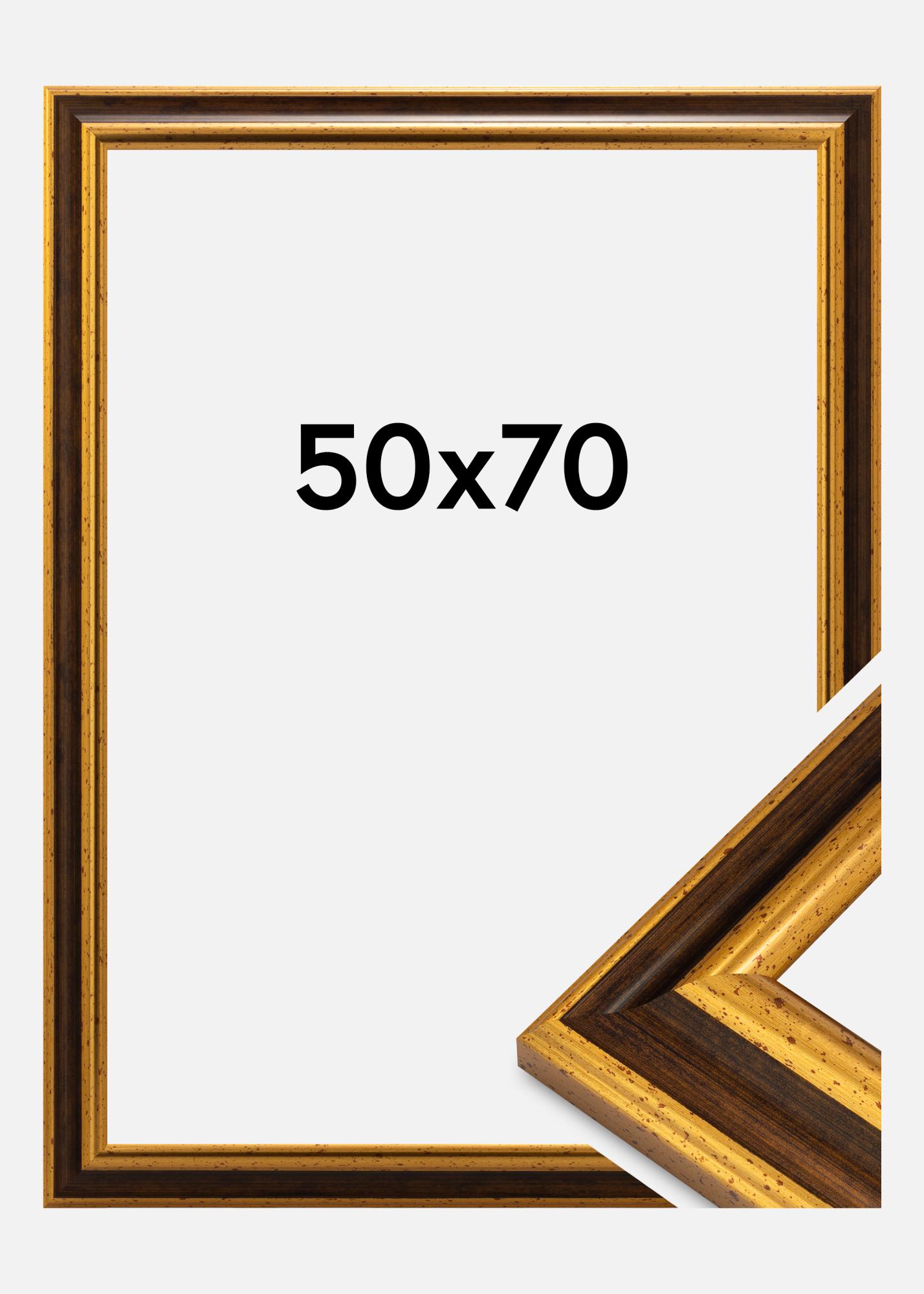 Este Marco para fotos de 50x70 cm es una combinación perfecta de elegancia clásica y funcionalidad moderna. Con su cálido acabado en Oro, aporta un marco lujoso a tu imagen que realmente atrae la mirada. El listón del Marco, de 45 mm de ancho y líneas suavemente biseladas, crea una profundidad que hace que la imagen destaque aún más en la pared.