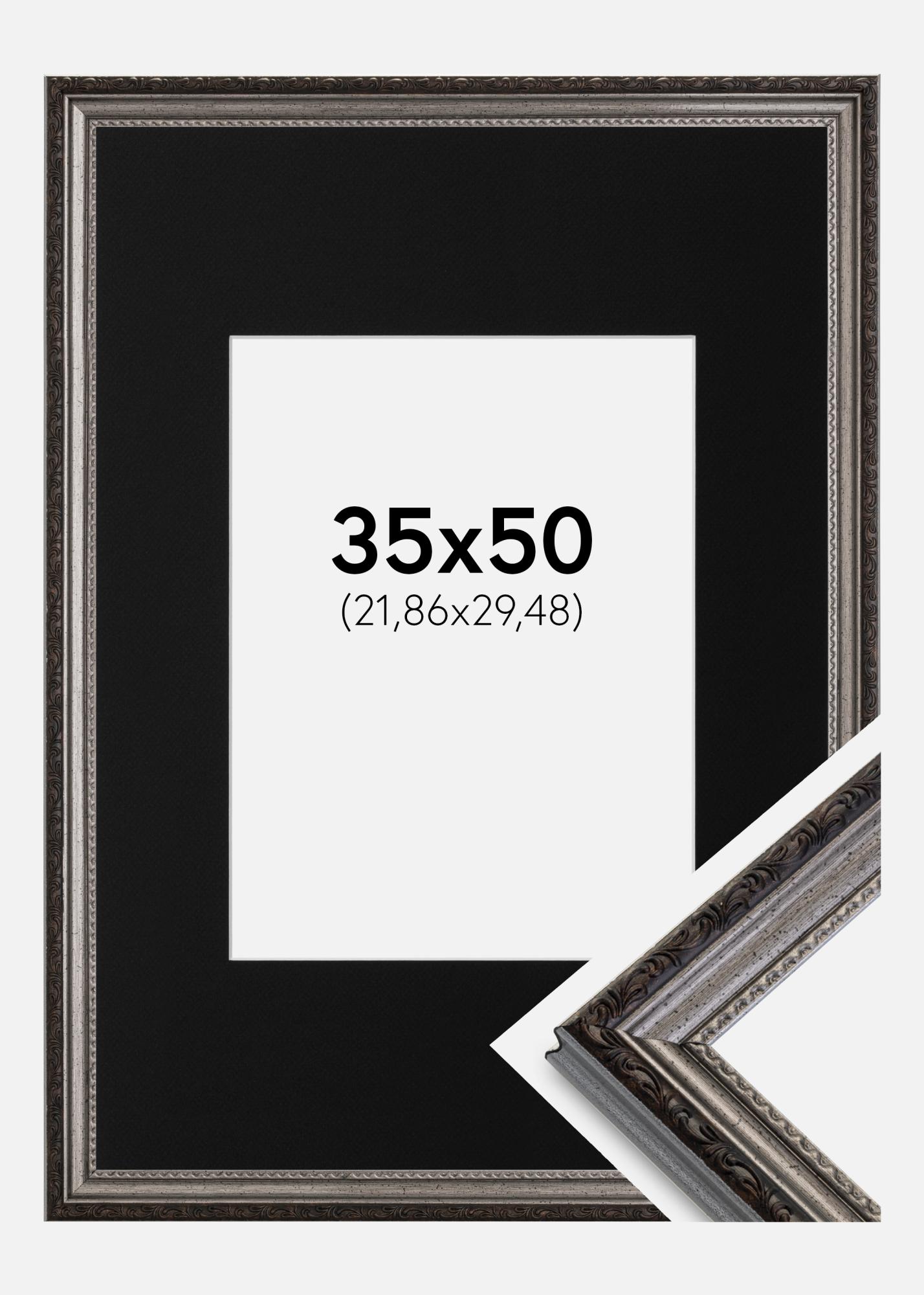 Marco Abisko Plateado 35x50 cm - Paspartú Negro 9x12 inches