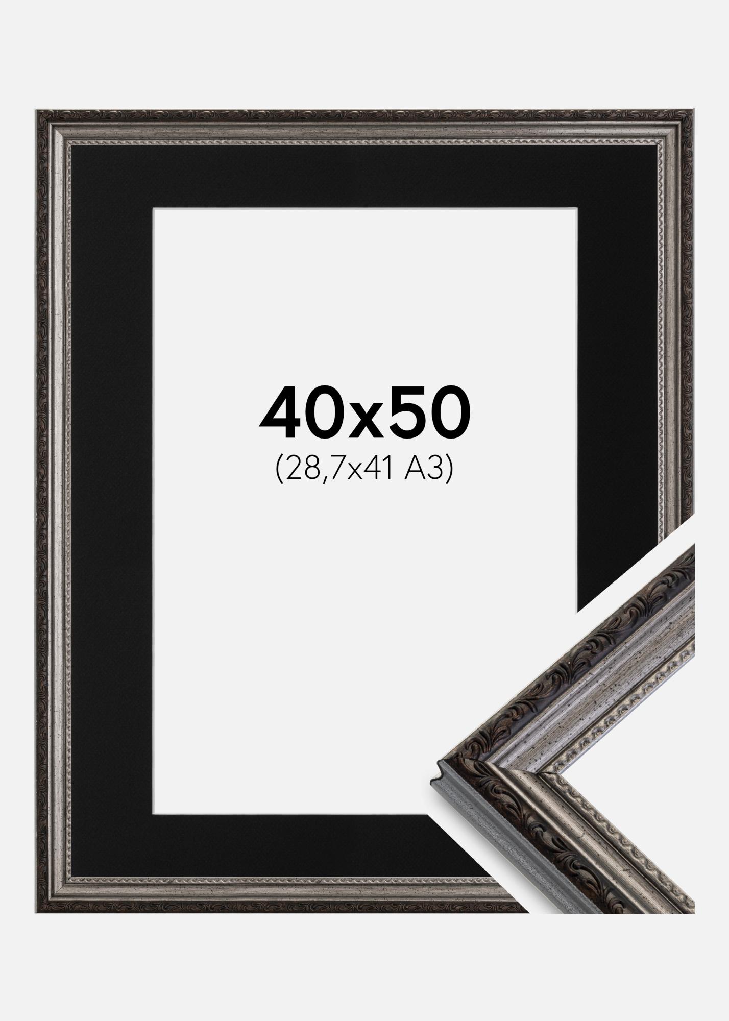 Marco Abisko Plateado 40x50 cm - Paspartú Negro 29,7x42 cm (A3)