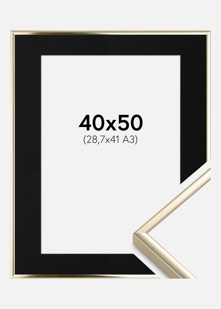 Marco Aluminio Acabado brillante Dorado 40x50 cm - Paspartú Negro 29,7x42 cm