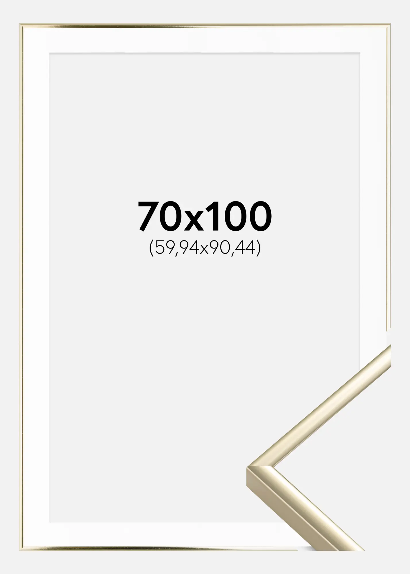 Marco Aluminio Acabado brillante Dorado 70x100 cm - Paspartú Blanco 24x36 inches