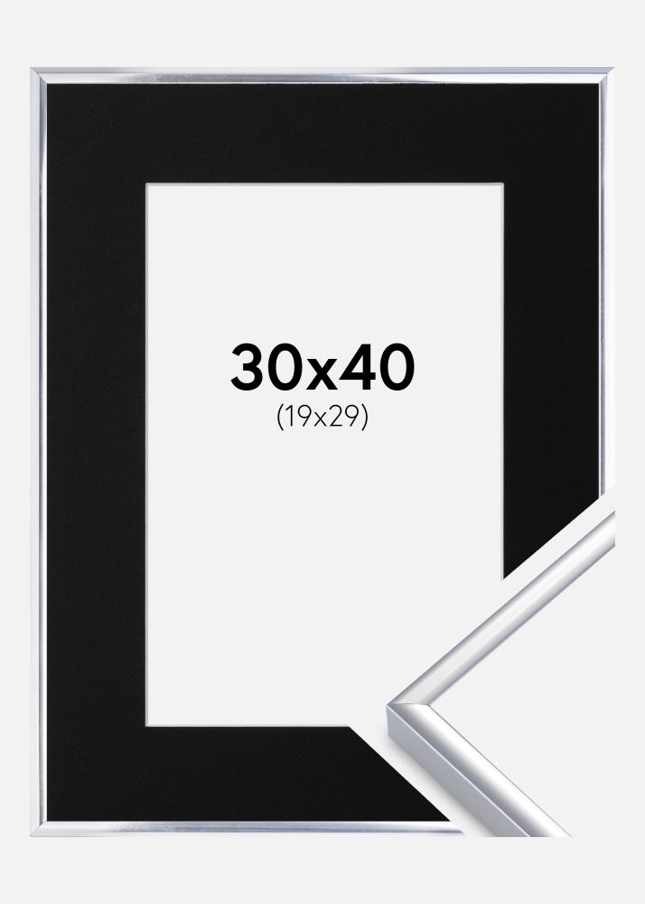 Marco Aluminio Acabado brillante Plateado 30x40 cm - Paspartú Negro 21x30 cm