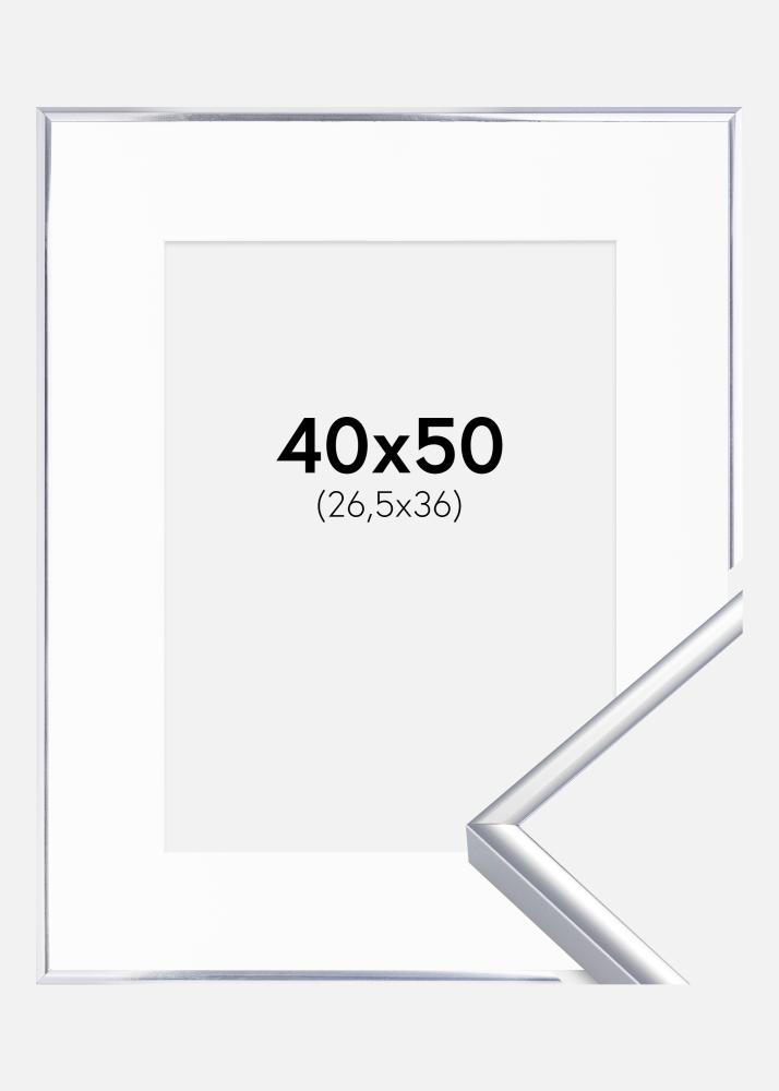 Marco Aluminio Acabado brillante Plateado 40x50 cm - Paspartú Blanco 27,5x37 cm