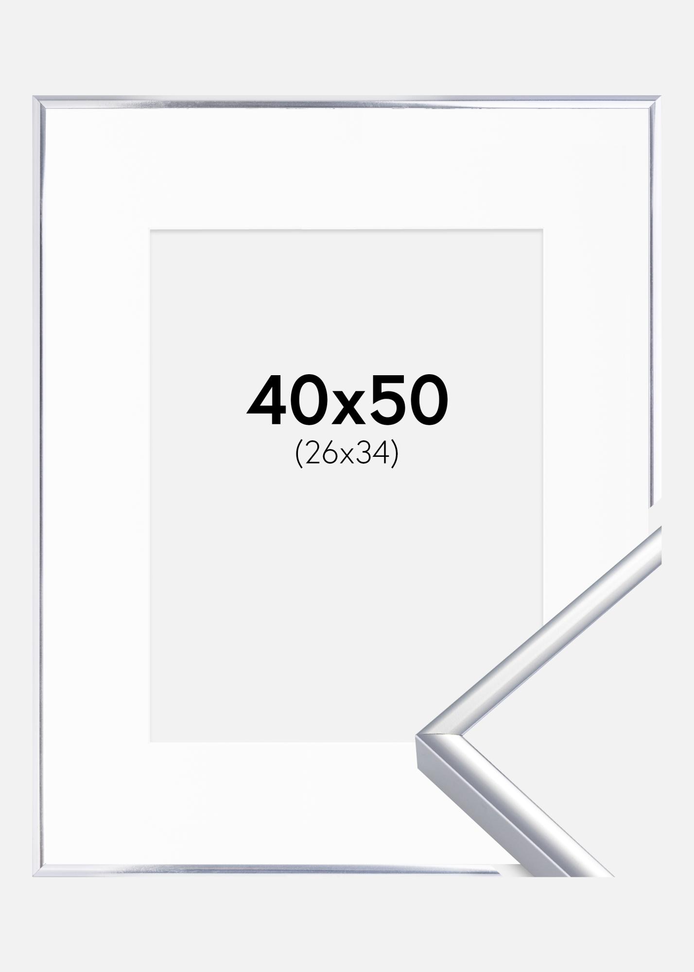 Marco Aluminio Acabado brillante Plateado 40x50 cm - Paspartú Blanco 27x35 cm
