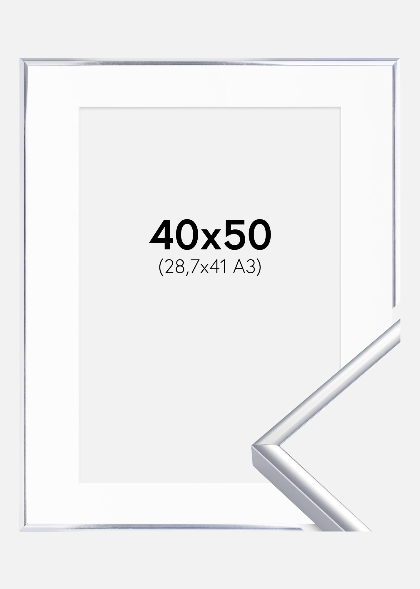 Marco Aluminio Acabado brillante Plateado 40x50 cm - Paspartú Blanco 29,7x42 cm