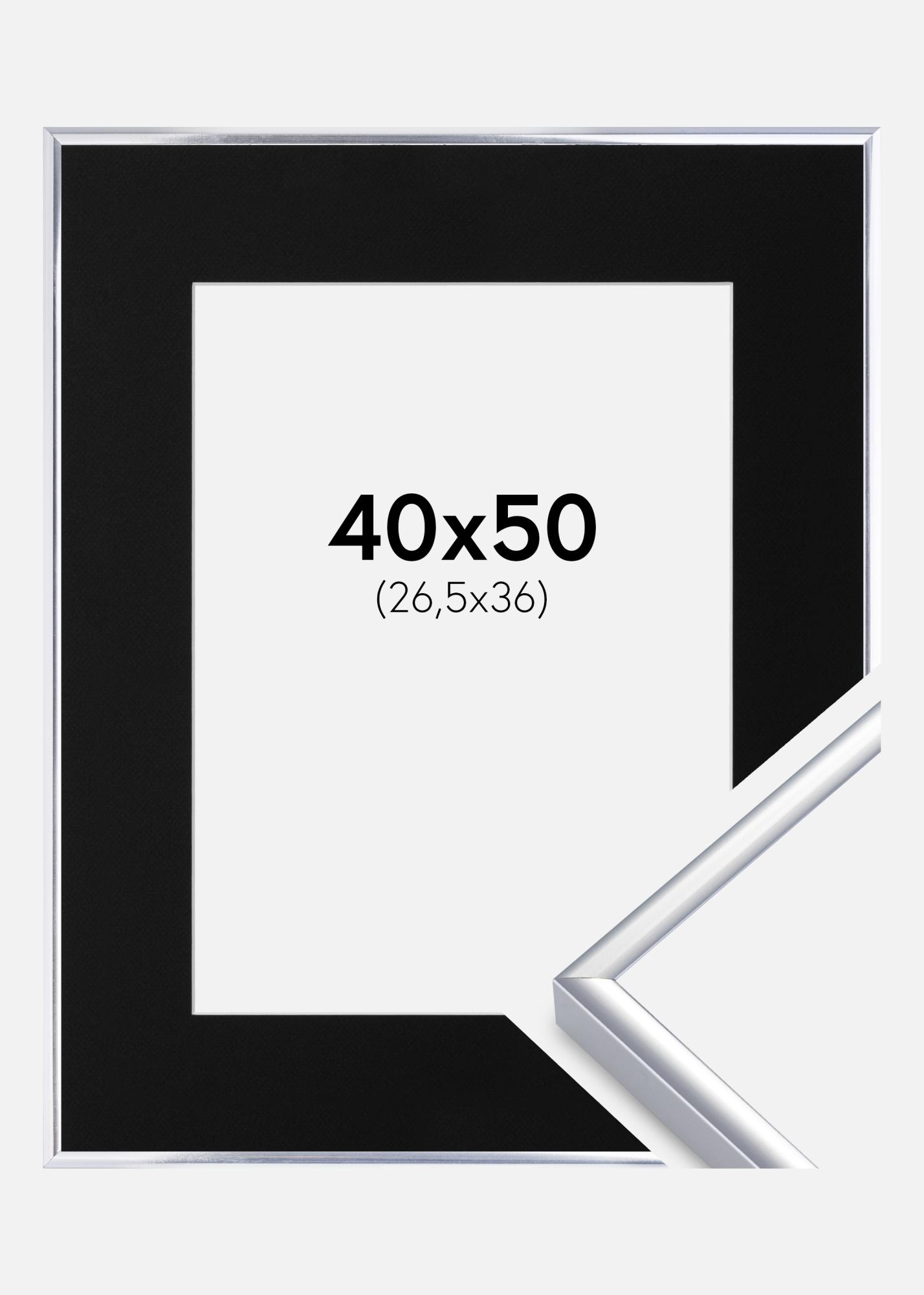 Marco Aluminio Acabado brillante Plateado 40x50 cm - Paspartú Negro 27,5x37 cm