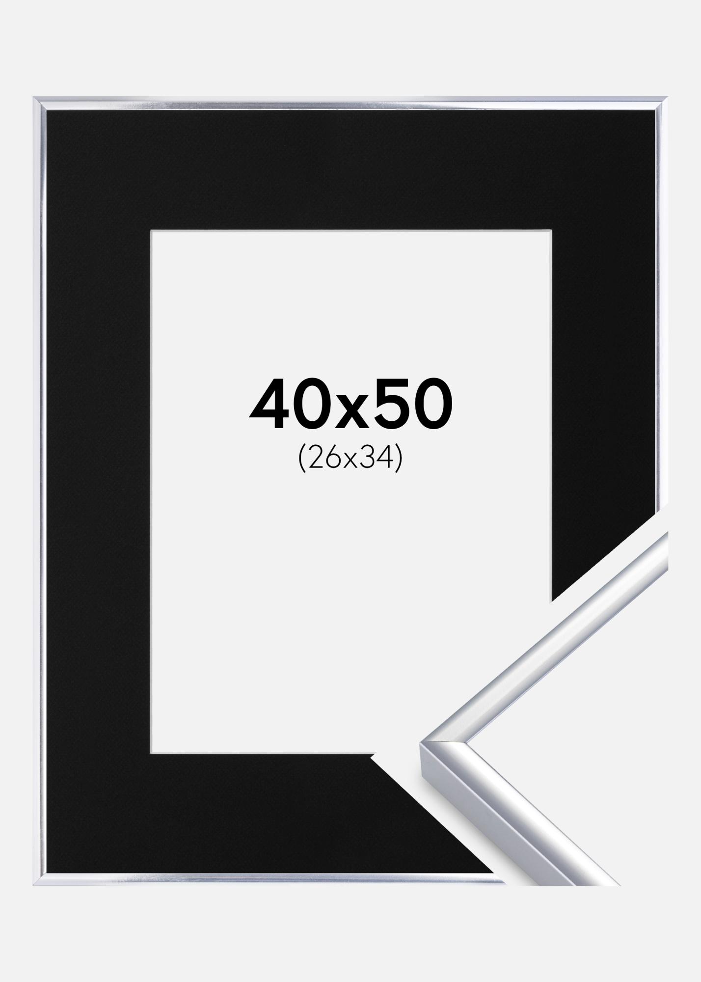 Marco Aluminio Acabado brillante Plateado 40x50 cm - Paspartú Negro 27x35 cm