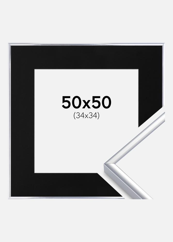 Marco Aluminio Acabado brillante Plateado 50x50 cm - Paspartú Negro 35x35 cm