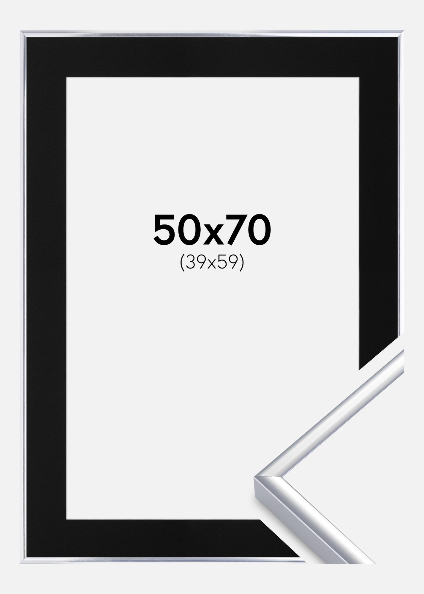 Marco Aluminio Acabado brillante Plateado 50x70 cm - Paspartú Negro 40x60 cm