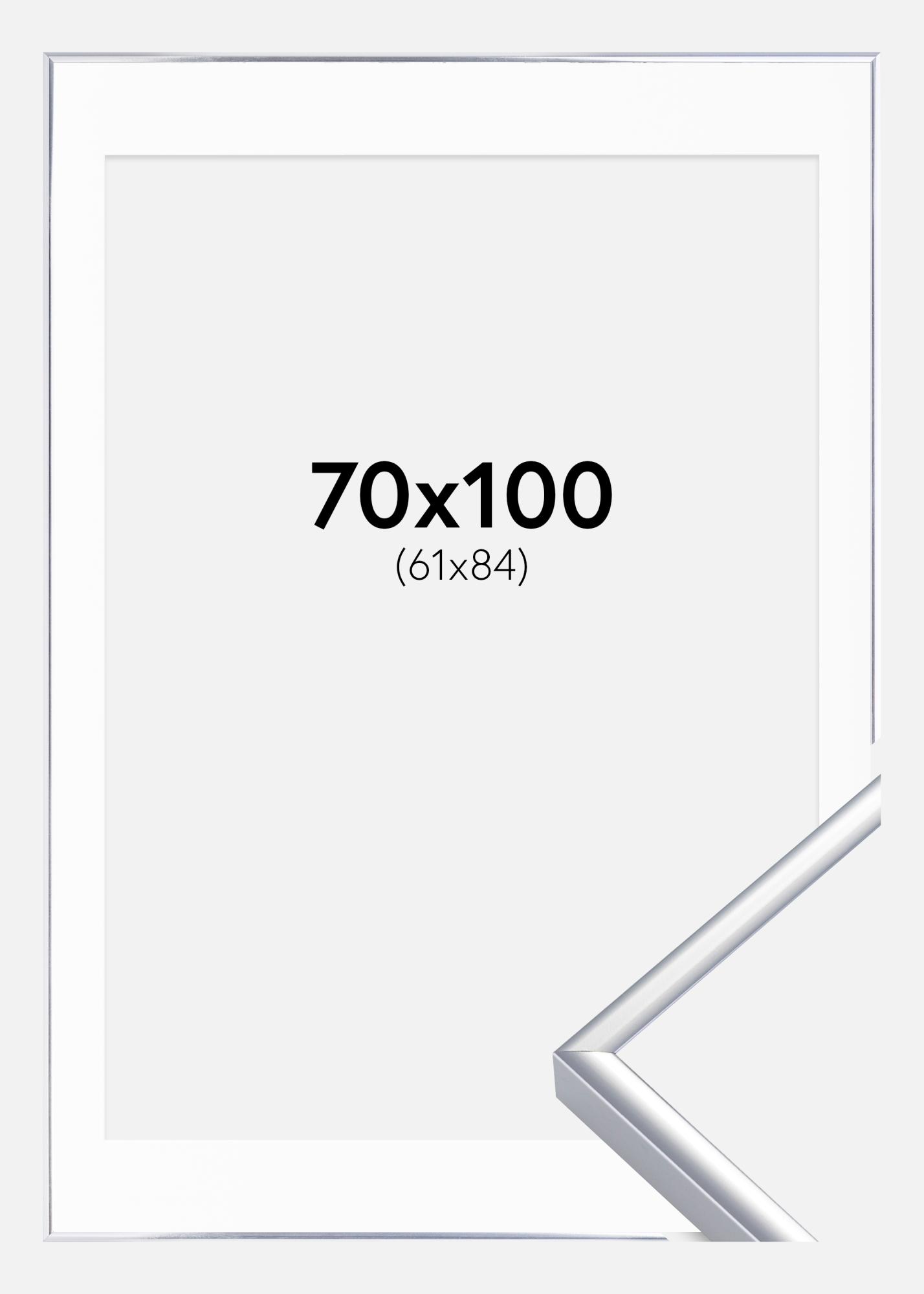 Marco Aluminio Acabado brillante Plateado 70x100 cm - Paspartú Blanco 62x85 cm