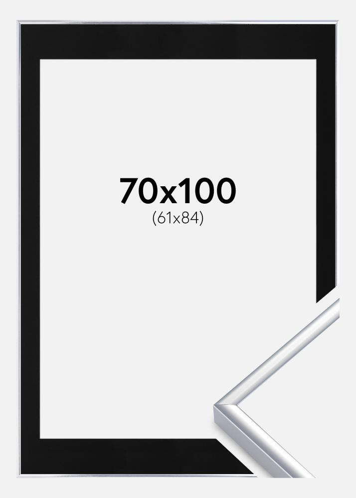 Marco Aluminio Acabado brillante Plateado 70x100 cm - Paspartú Negro 62x85 cm