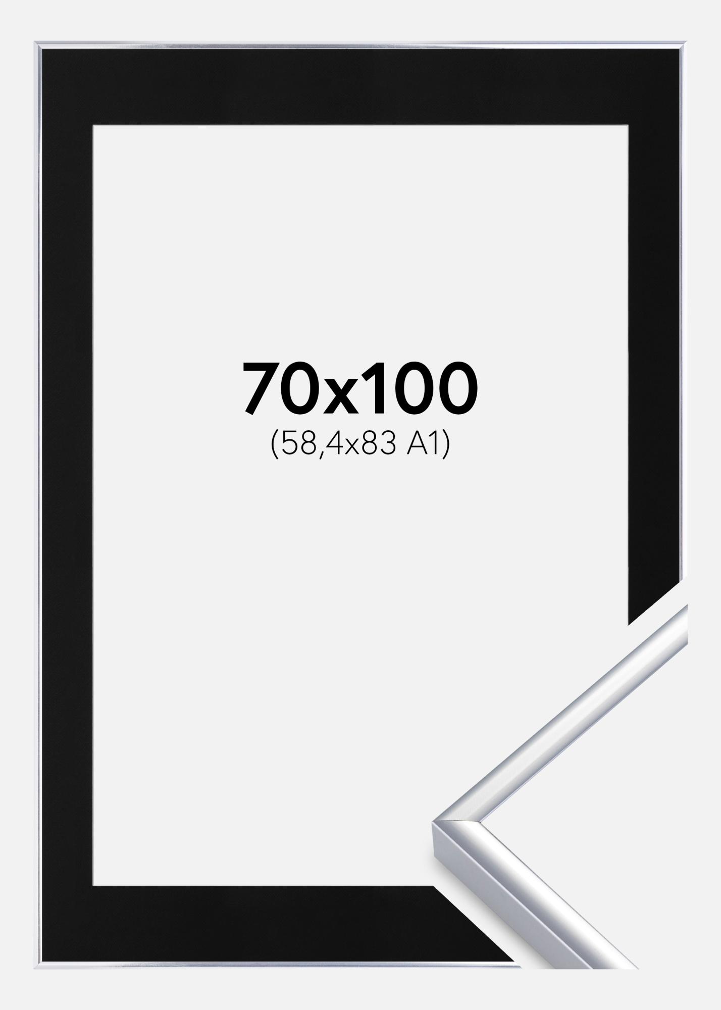 Marco Aluminio Acabado brillante Plateado 70x100 - Paspartú Negro 59,4x84 cm