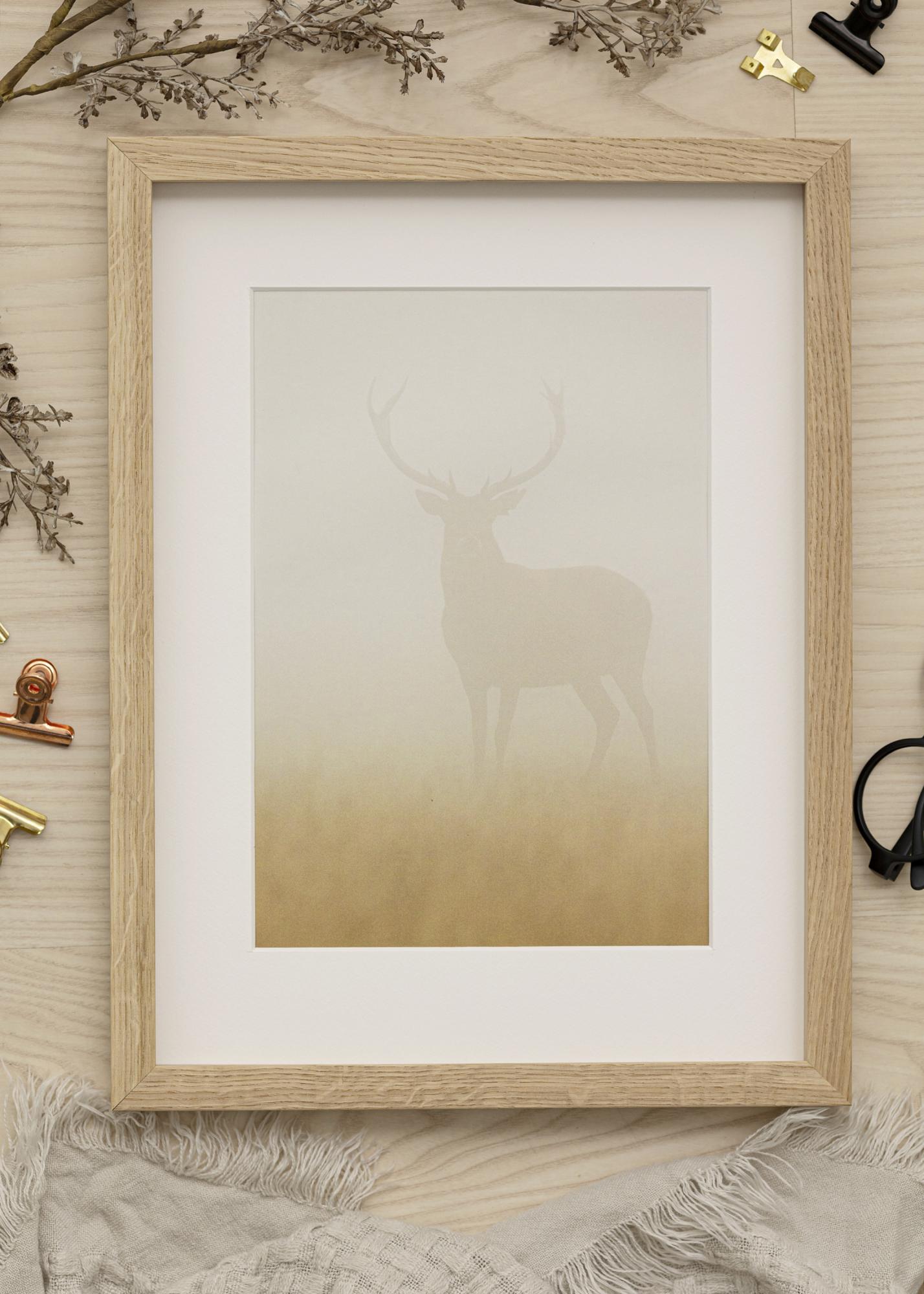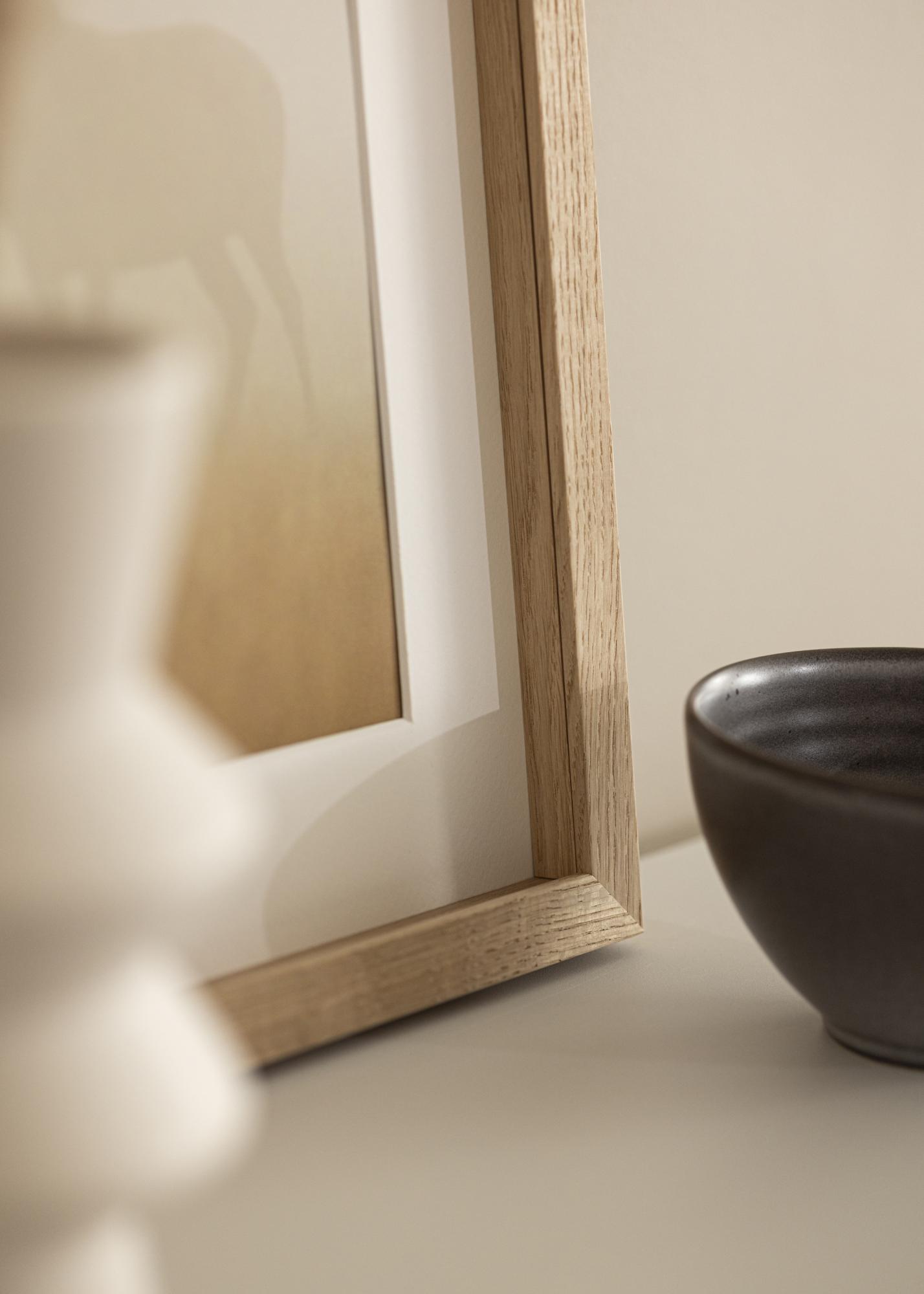 Amanda Box Roble es un marco de madera resistente que proporciona una impresión tridimensional y profundidad a tus imágenes. También incluye un paspartú blanco libre de ácido.