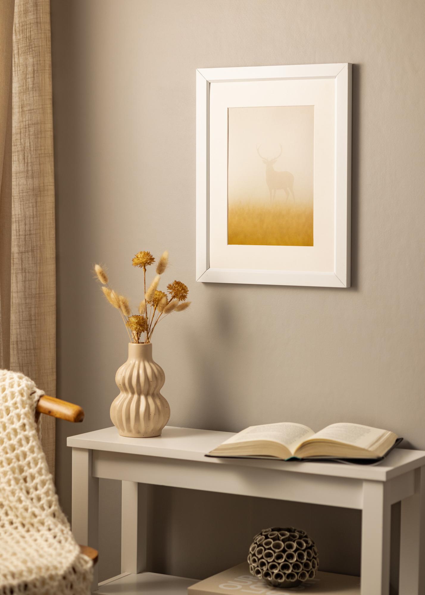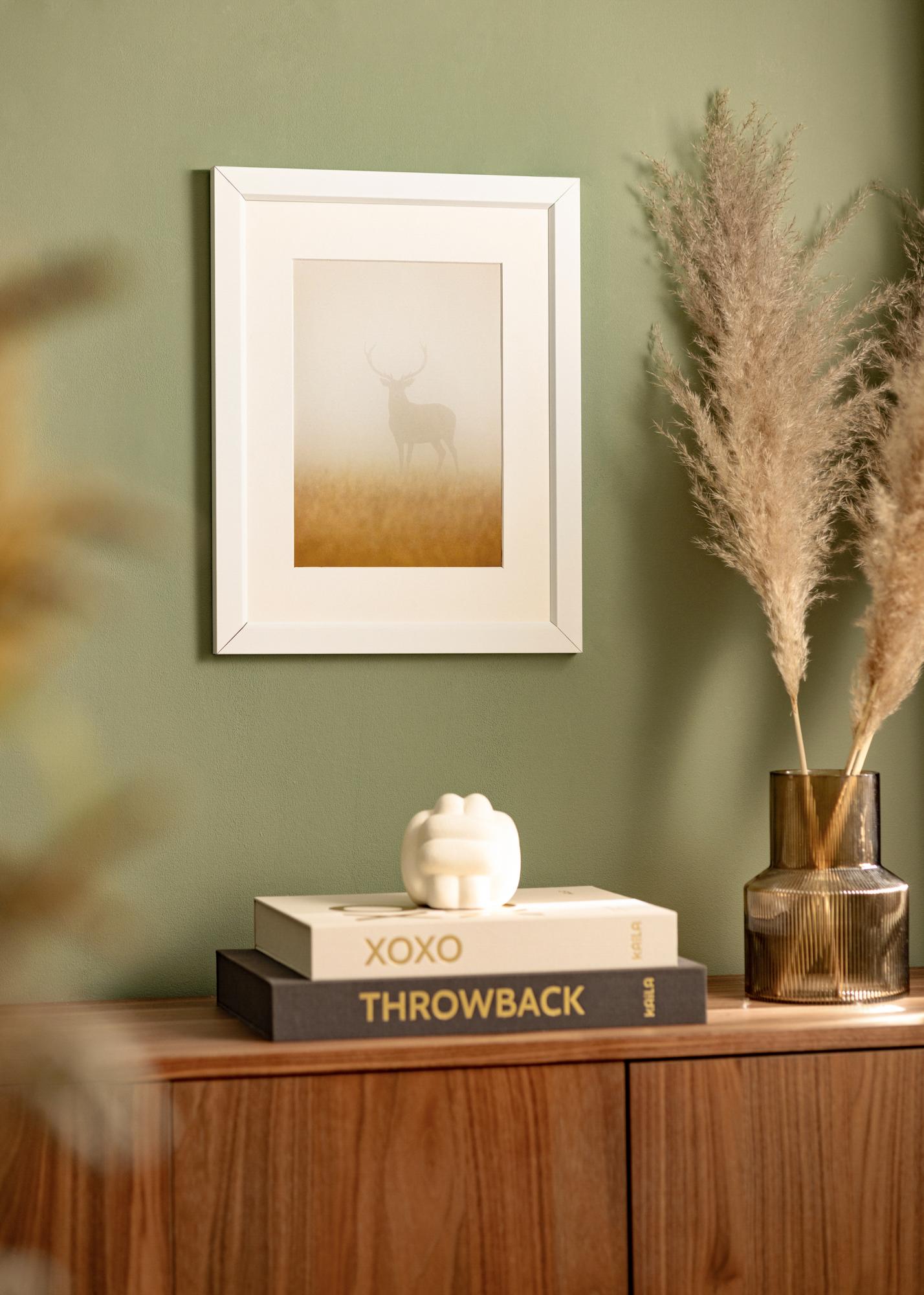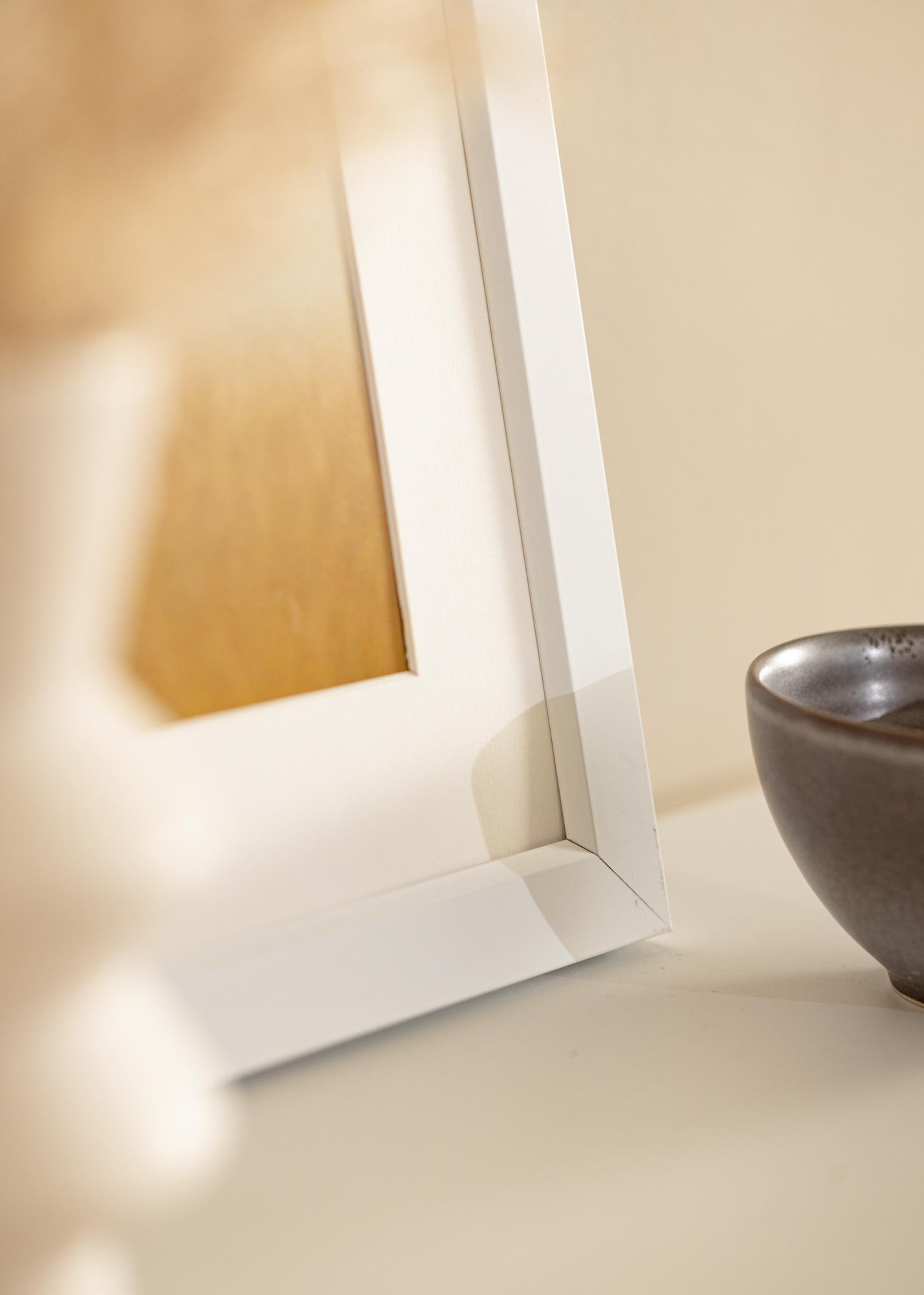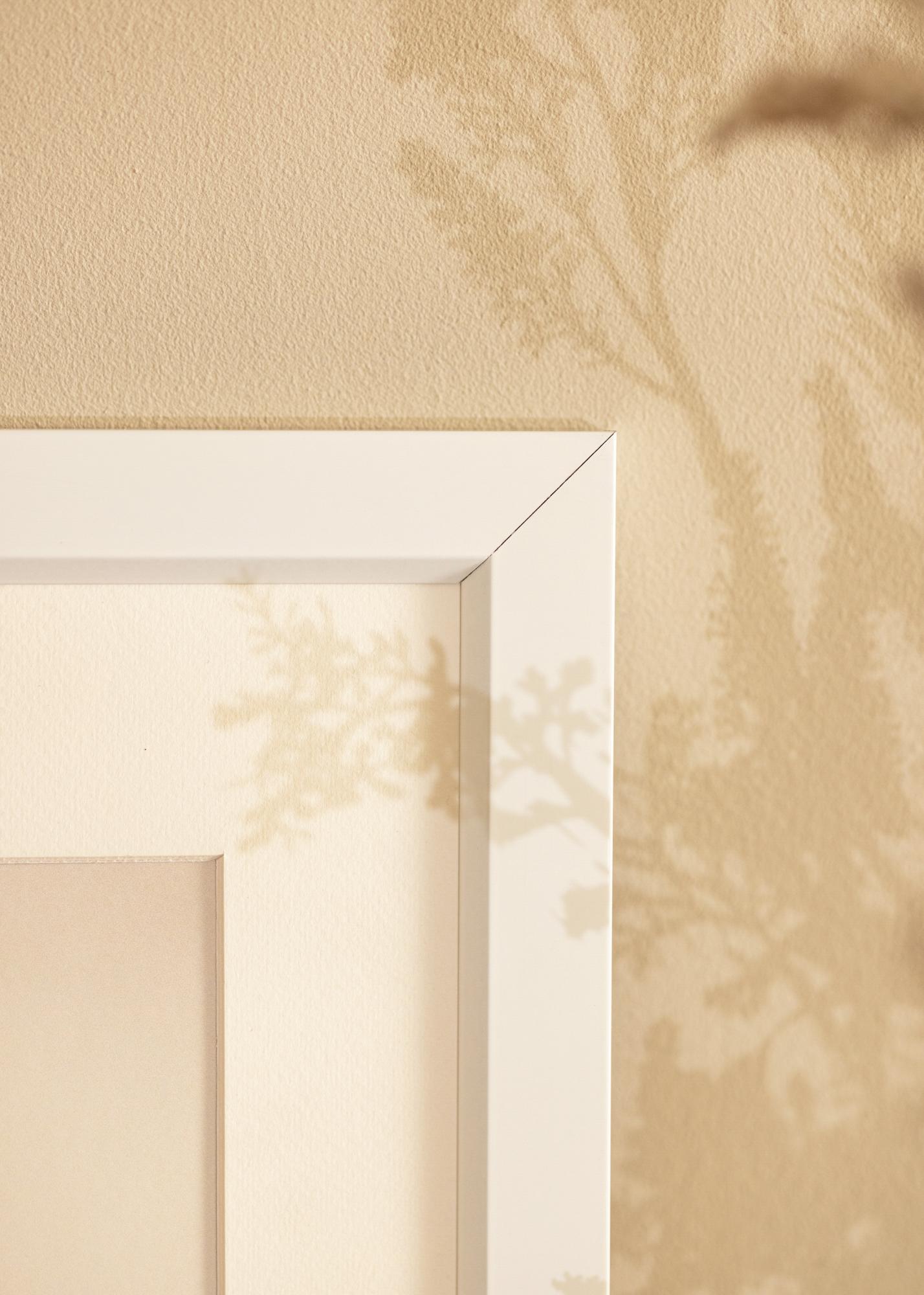 Marco de aluminio blanco elegante con un borde interior biselado que le da un aspecto elegante al cuadro y se adapta bien a todo tipo de interiores. Un marco blanco se adapta a todo tipo de imágenes, permite que el enfoque esté completamente en el motivo y hace que se destaque. Es más efectivo con motivos coloridos o gráficos que crean contraste con el blanco. Combina varios tipos de marcos blancos con motivos en un tema para crear una galería de pared que sea el centro de atención en la sala de estar.