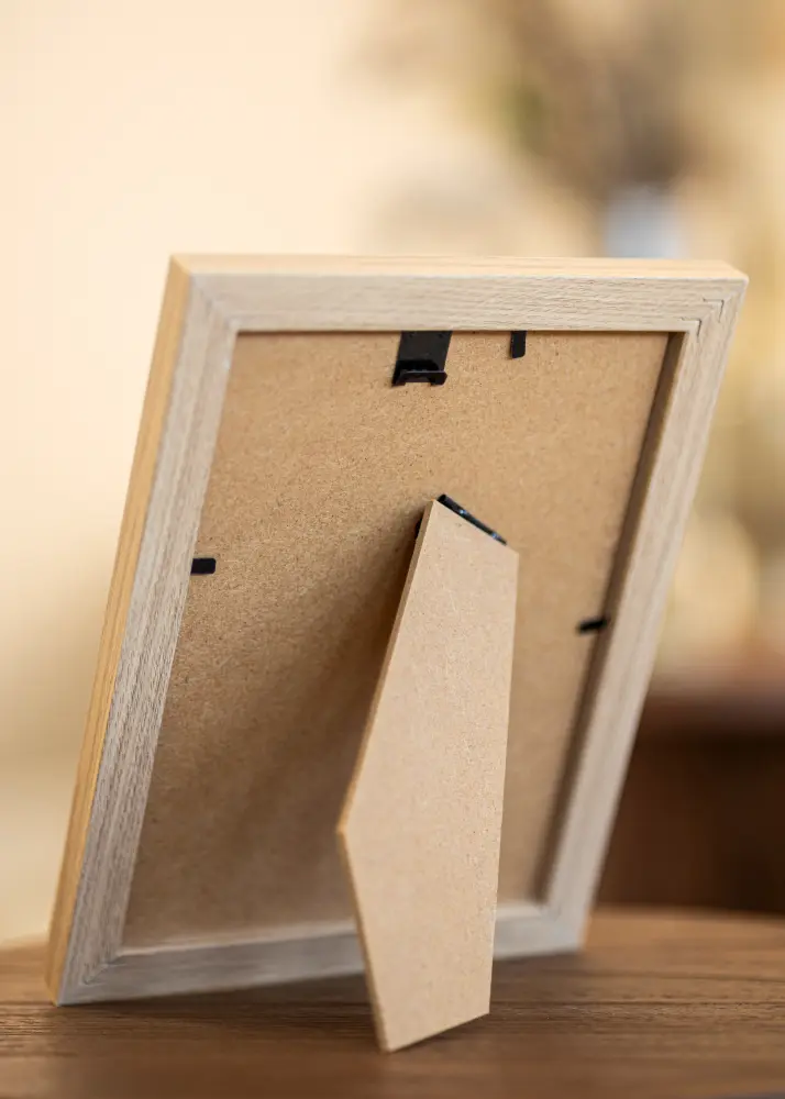 This affordable picture frame is not only stylish but also practical. With a frame width of 20 mm, it provides a stable and sleek frame for your pictures. The frame is made of MDF and has a matte finish that complements the natural feel. Additionally, this 13 x 18 cm frame comes equipped with metal hangers on the back, making it easy to mount on the wall. The assembly process is smooth thanks to the bendable pegs that keep everything in place.