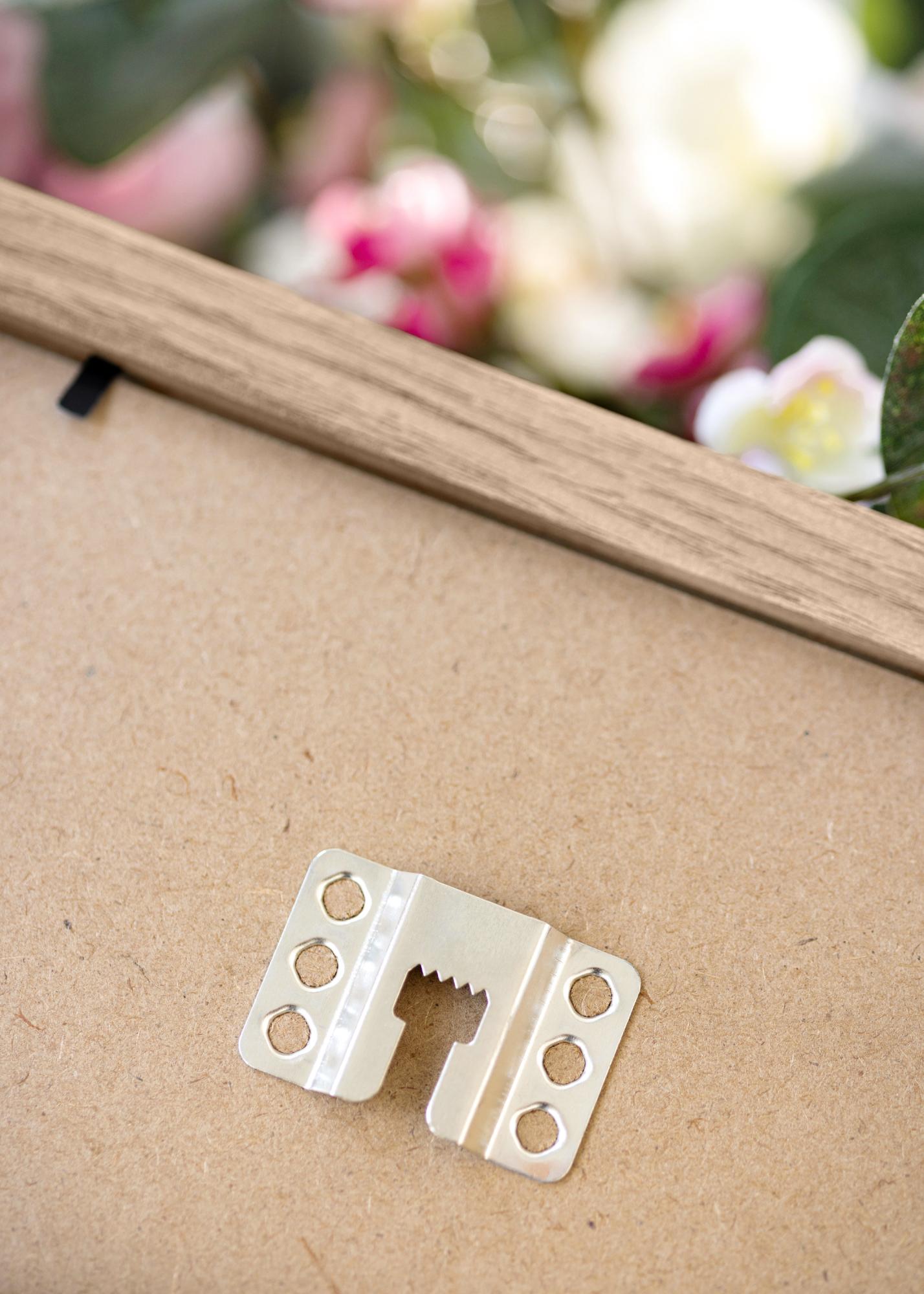 Este marco asequible está hecho de MDF y tiene un acabado mate que complementa el tono natural del roble. Viene equipado con ganchos de metal en la parte posterior para una fácil colocación y se ensambla fácilmente con clavos flexibles. Ya sea que elijas colocarlo en una estantería o colgarlo en la pared, este marco de fotos le dará a tu hogar un toque de clase y calidez. También está disponible en diferentes tamaños para cubrir todas tus necesidades de enmarcado.
