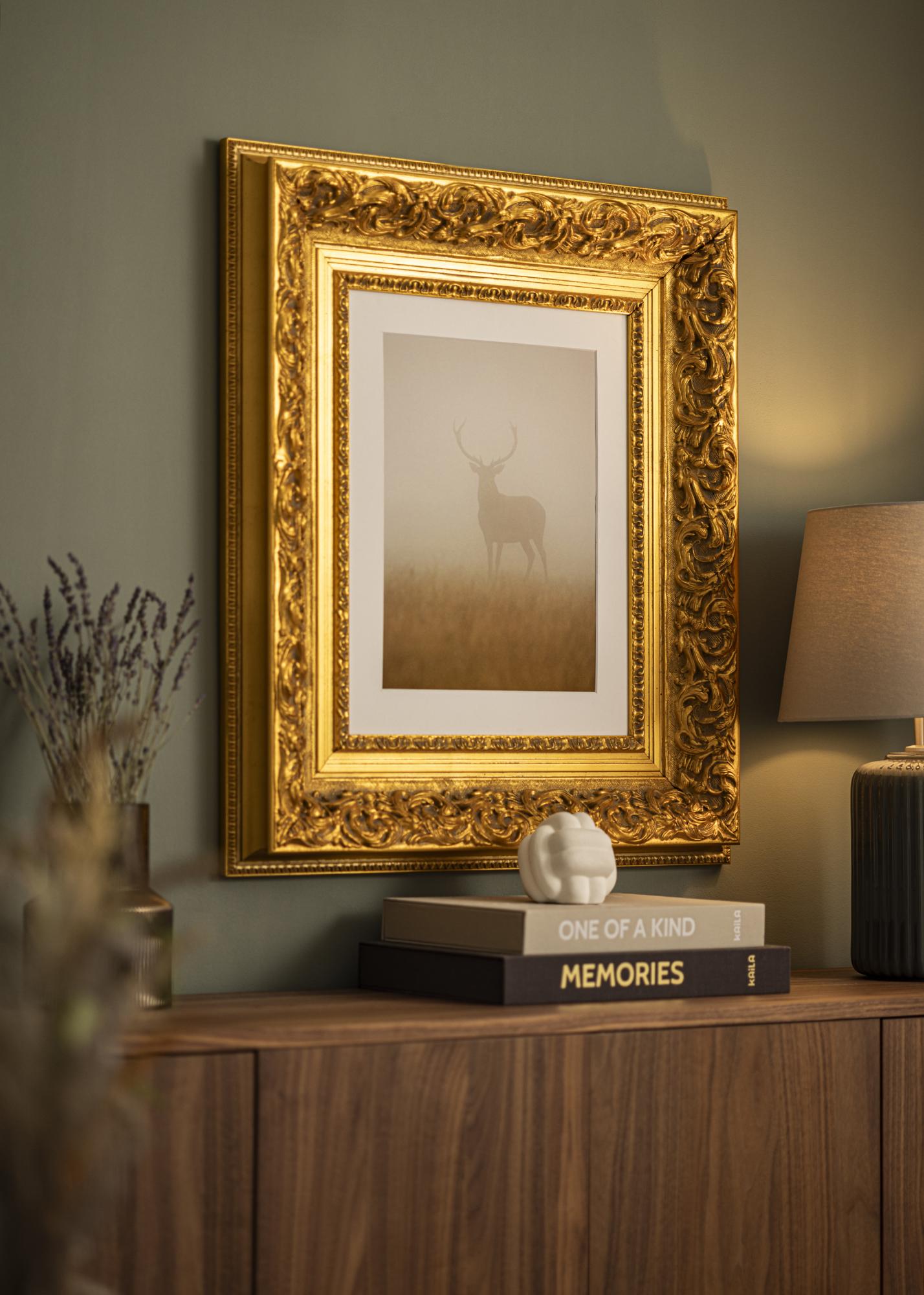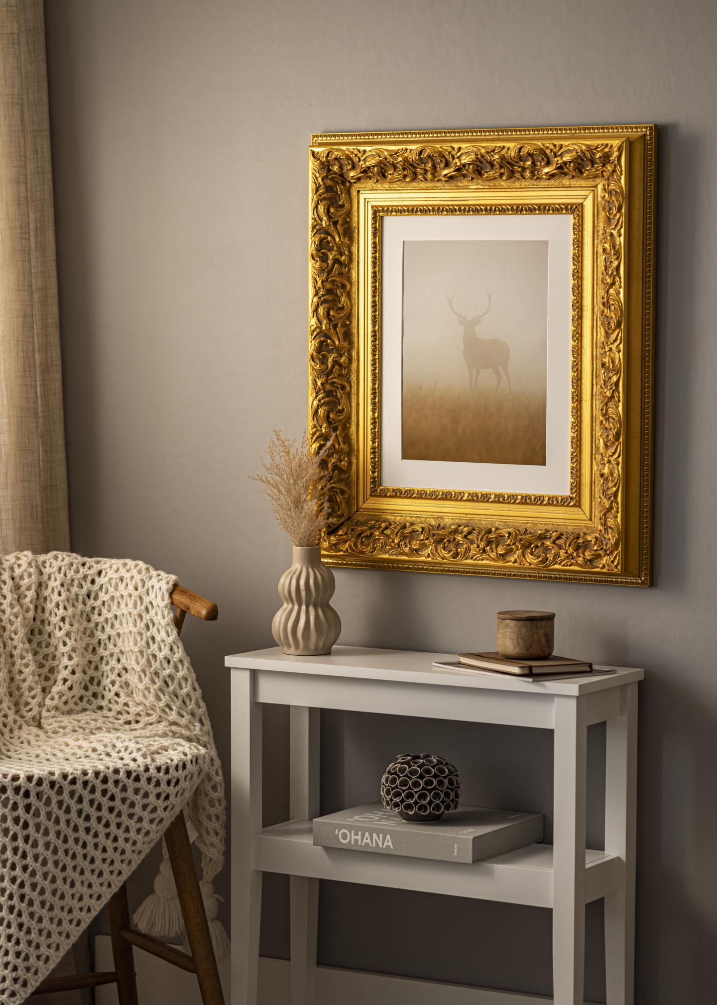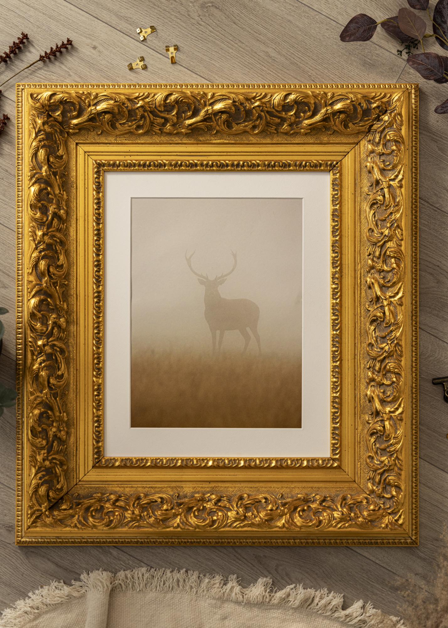 Nuestro Marco Birmingham Oro es un marco de fotos hecho a medida que fabricamos en nuestro propio taller de marcos. Con su profundo tono dorado y diseño barroco clásico, se convierte en un elegante complemento para cualquier habitación. Este marco de fotos tiene una moldura de 152 mm de ancho y una profundidad de 74 mm, lo que le confiere una presencia impresionante en la pared.