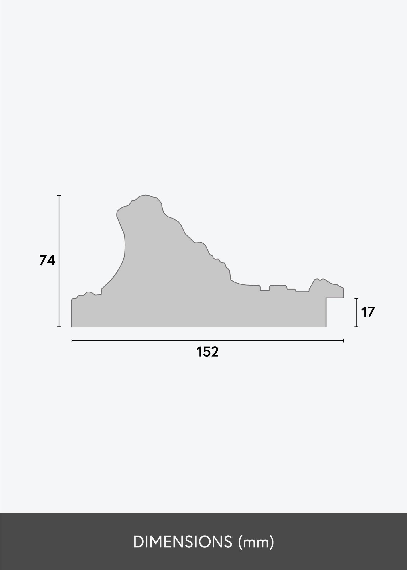 Nuestro marco para cuadros Birmingham Silver es un producto hecho a medida que se fabrica en nuestro propio taller de marcos. Con un impresionante ancho de 152 mm y una profundidad de 74 mm, este marco ofrece una estructura robusta y llamativa para tus obras de arte y fotografías más queridas.