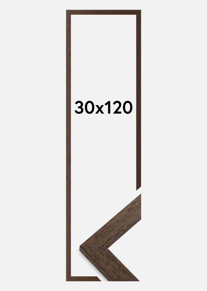 ¡Dale a tus paredes un toque de elegancia con este marco de cuadro marrón oscuro que emana belleza clásica! Con sus dimensiones de 30x120 cm, es perfecto para resaltar obras de arte o fotografías largas y angostas. La clara veta de madera de aliso le da a cada marco un carácter único y cálido.